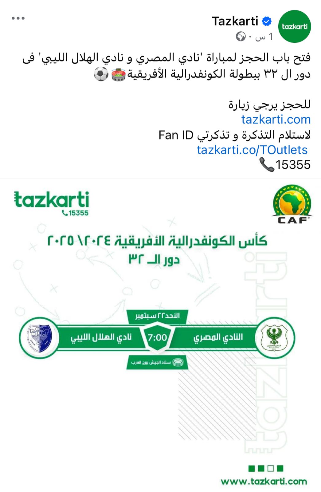 طرح تذاكر مباراة المصري والهلال الليبي في الكونفدرالية