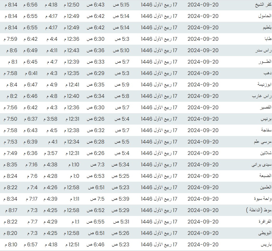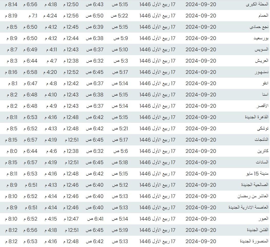 وفيما يلي مواقيت الصلاة، لعدد من مدن ومحافظات الجمهورية من واقع بيانات الهيئة العامة للمساحة