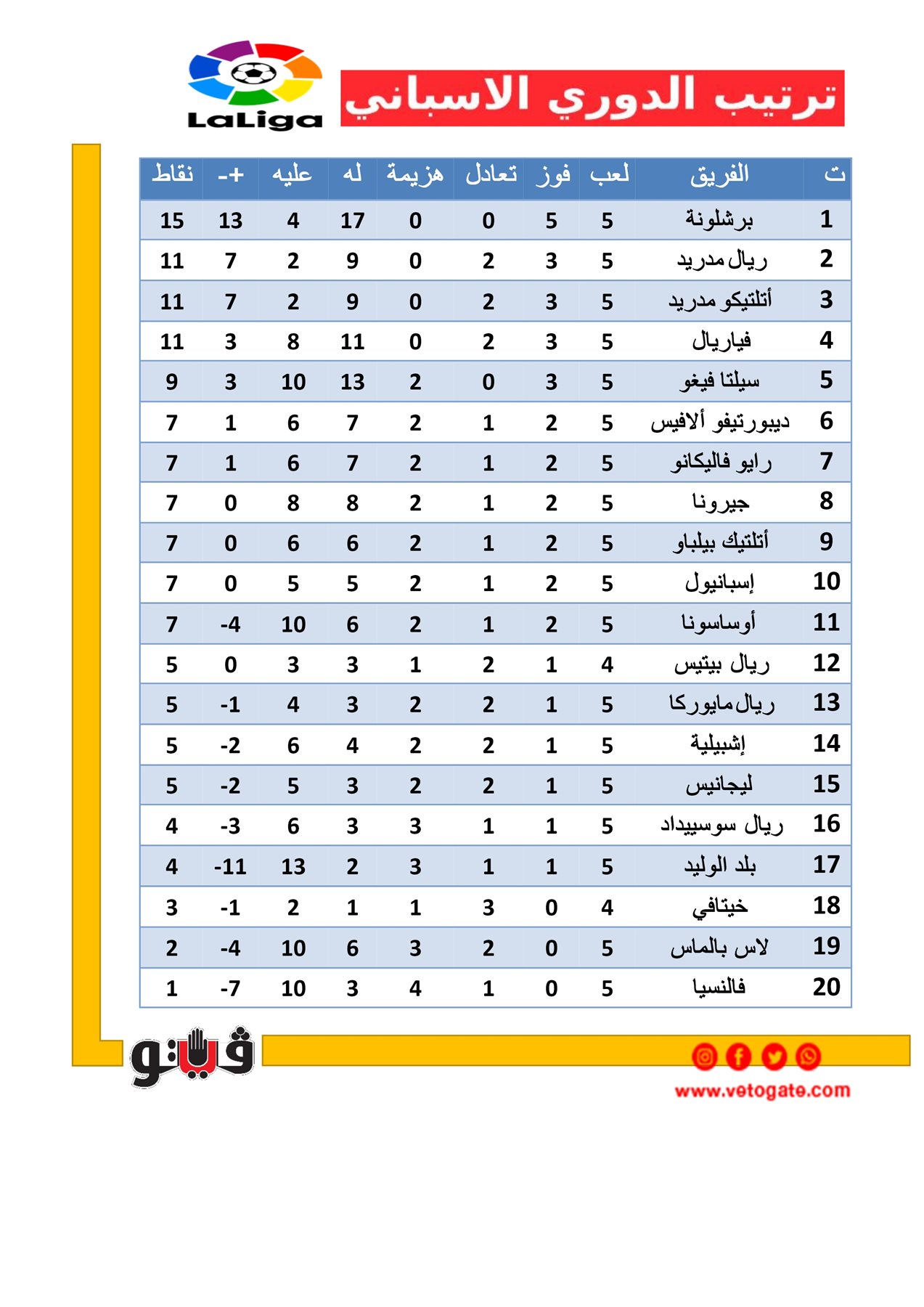 ترتيب الدوري الإسباني عقب الجولة الخامسة