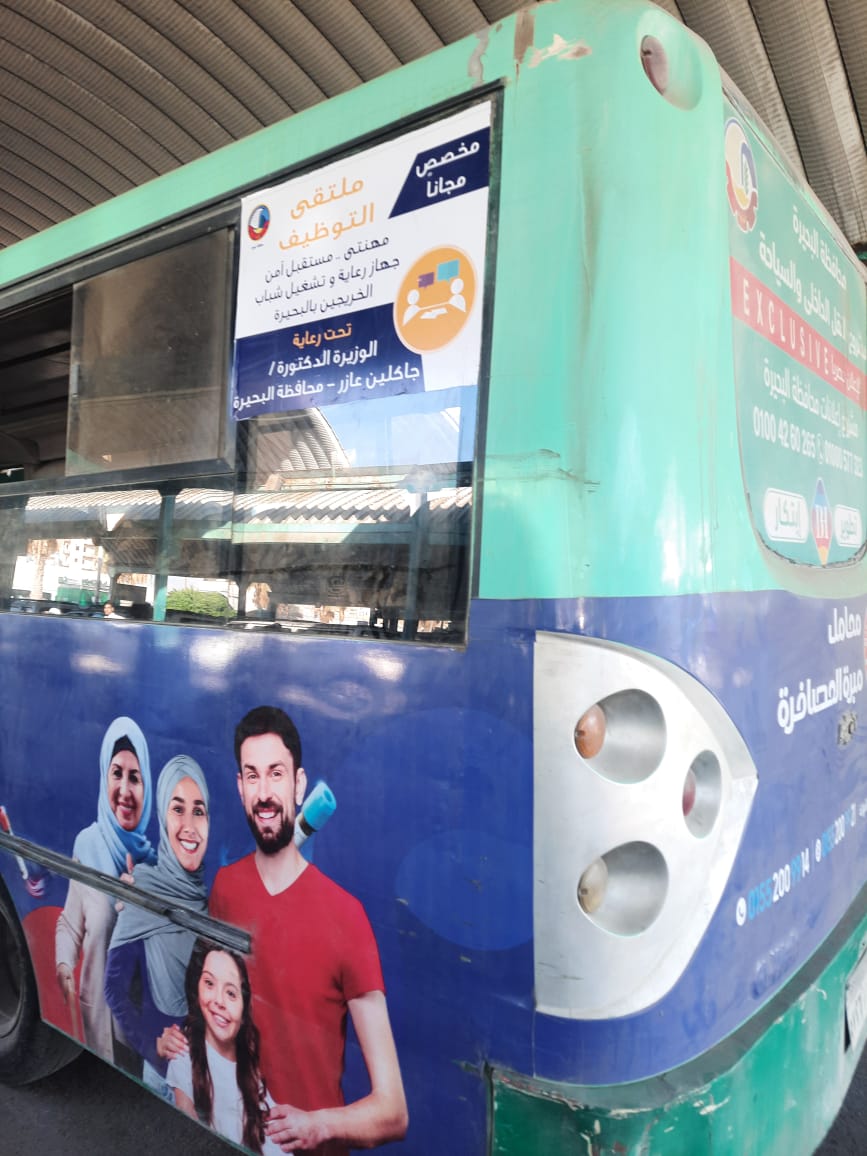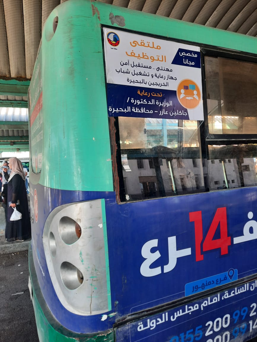 وتم توفير ٤ أتوبيسات نقل داخلي مخصصة لنقل الشباب إلى الملتقى التوظيفي منهم أتوبيسين ذهابًا وإيابا كل نصف ساعة من مدخل المحافظة بشارع عبد السلام الشاذلى إلى فندق دمنهور السياحي، بالإضافة إلى أتوبيسين آخرين لنقل الشباب من موقف دمنهور إلى فندق دمنهور السياحى ذهابا وإيابا كل نصف ساعة، تتفيذا لتوجيهات الدكتورة جاكلين عازر - محافظ البحيرة، كما تم وضع ملصق (ستيكر) على تلك الأتوبيسات توضح أنها خاصة بالملتقى وبالمجان للتيسير على أبناء المحافظة المتقدمين.