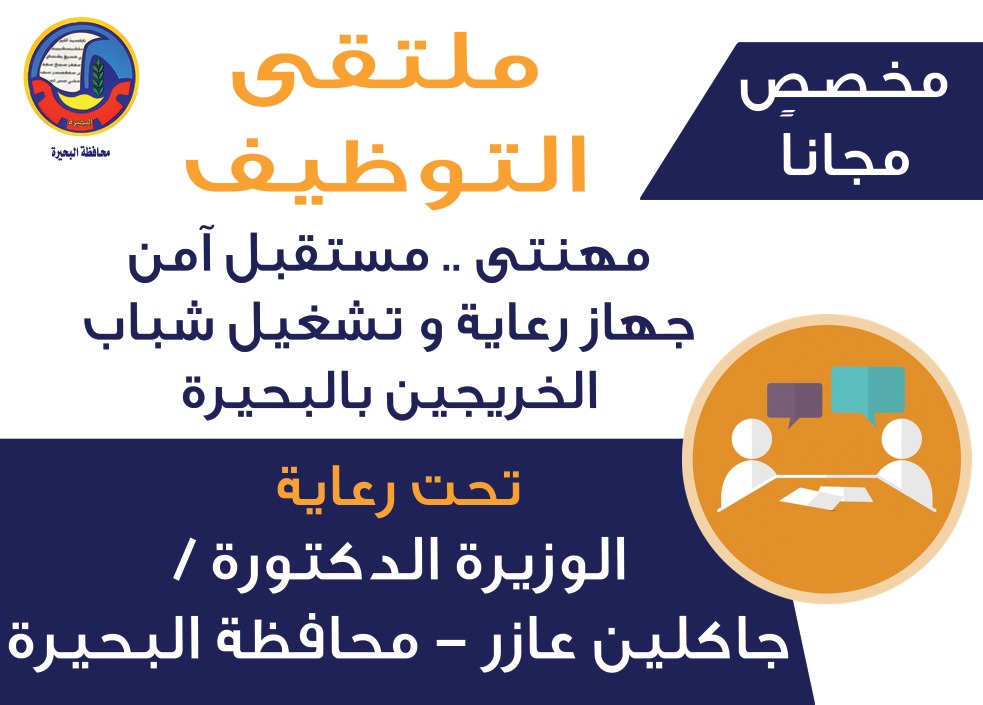 وناشدت محافظة البحيرة جميع الشباب حضور الملتقى الذي ينظمه جهاز تشغيل شباب الخريجين بالتنسيق مع شركات القطاع الخاص ويشارك فيه 25 شركة من مختلف القطاعات، ويتيح أكثر من 5000 فرصة عمل حقيقية للشباب من جميع المؤهلات الدراسية وحتى بدون مؤهلات، وذلك لمن تتراوح أعمارهم بين 18 و55 عامًا، وعلى هامش الملتقى، تم تخصيص أماكن لعرض منتجات المرأة المعيلة، بالتعاون مع المجلس القومي للمرأة، بالإضافة إلى إقامة معرض مصغر للكتاب.