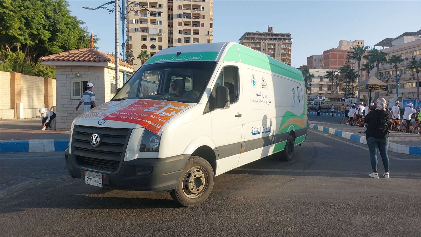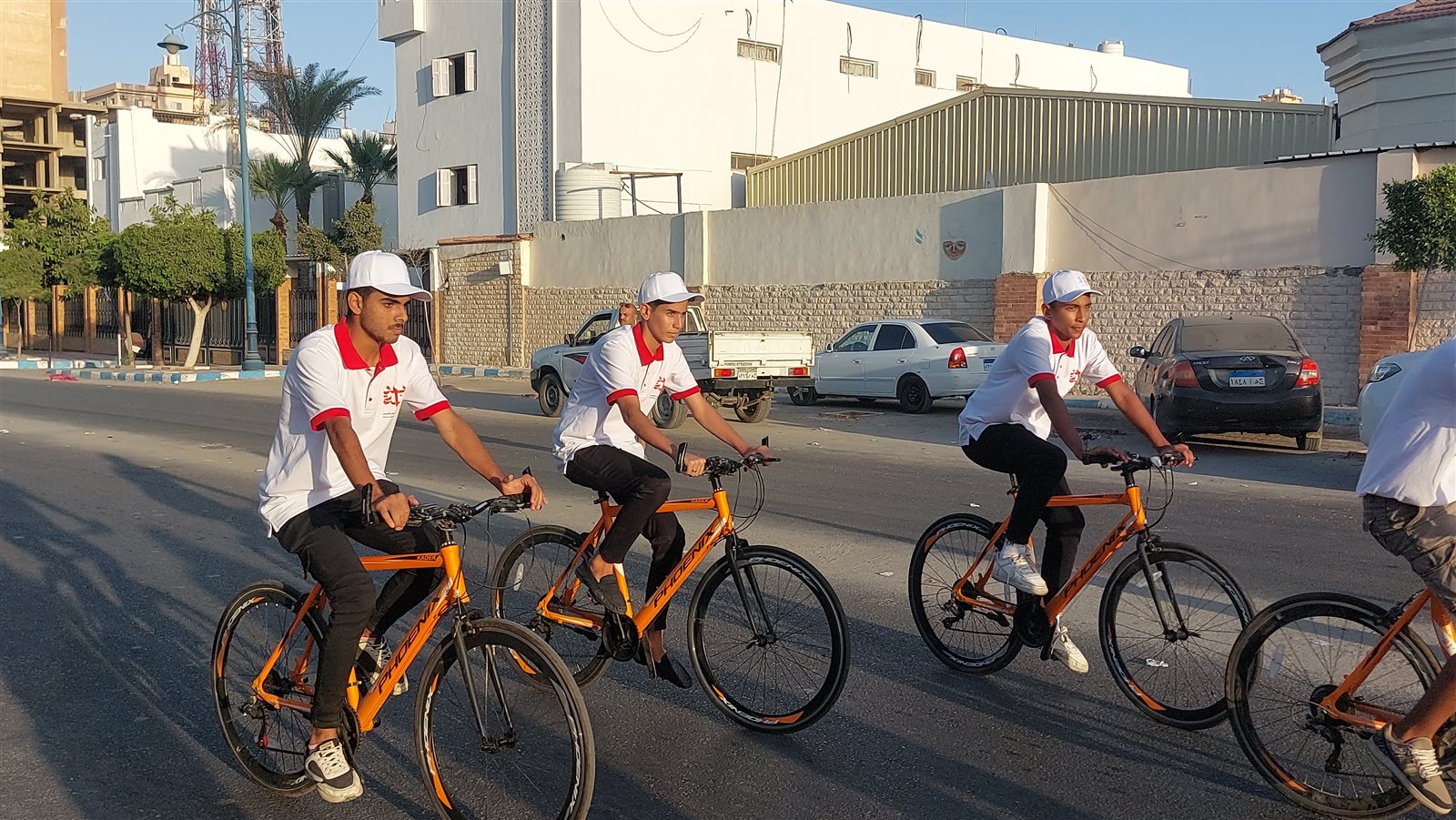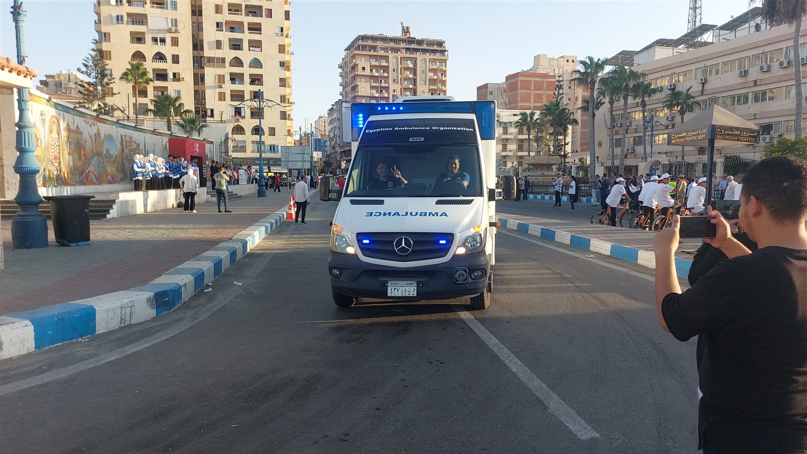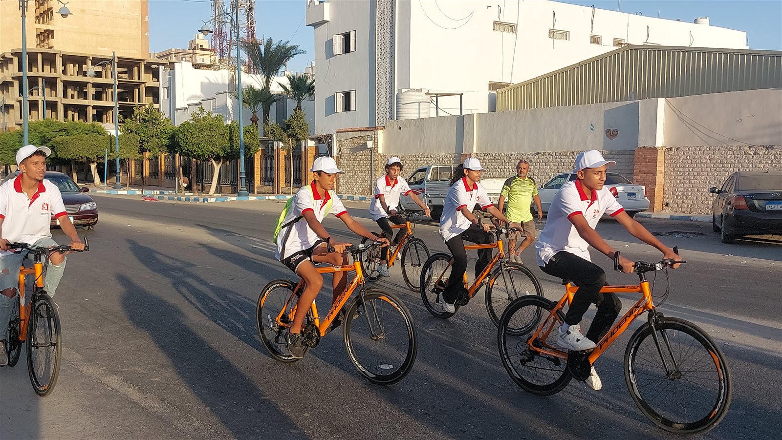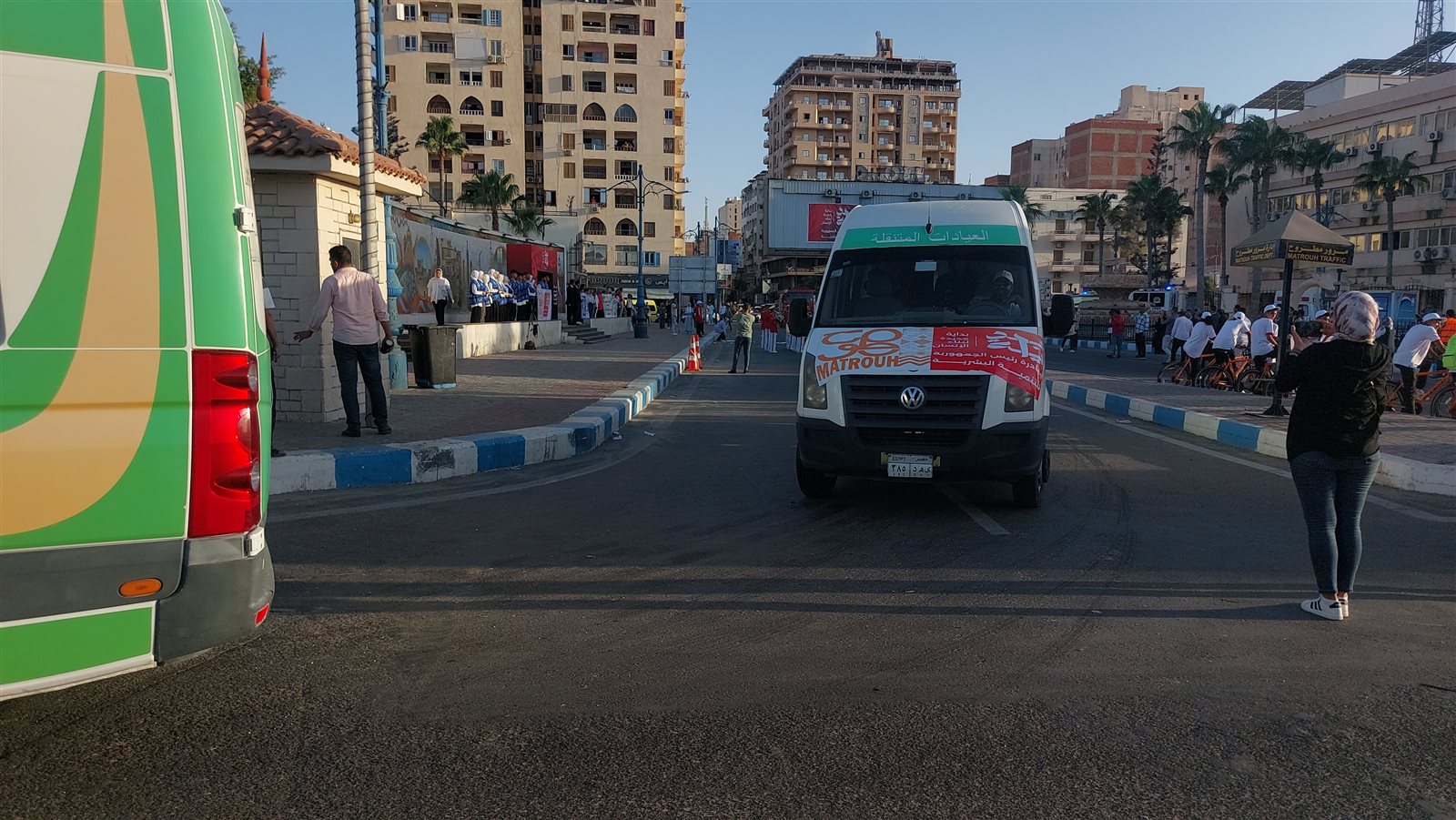 بمحافظ مطروح بطابور من السيارات الخدمية لجميع الجهات المشاركة ماراثون دراجات من مديرية الشباب والرياضة.