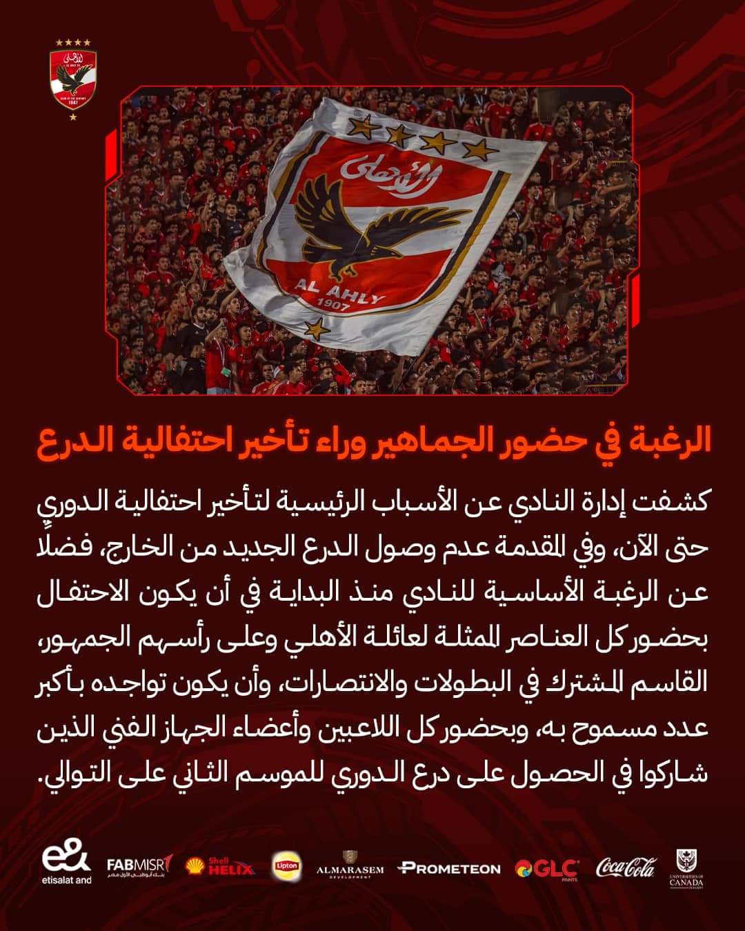 كشفت إدارة النادي الأهلي الأسباب وراء التأخير في احتفالية الدوري.