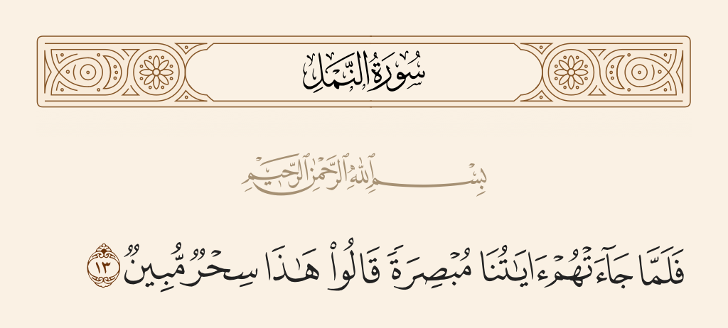 قال تعالى: «فَلَمَّا جَاءَتْهُمْ آيَاتُنَا مُبْصِرَةً قَالُوا هَذَا سِحْرٌ مُبِينٌ».