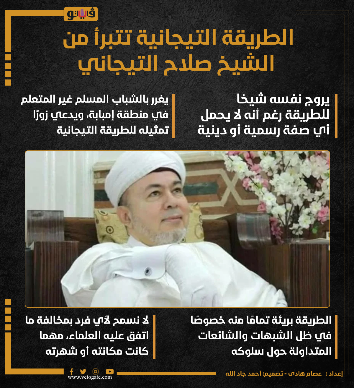 الطريقة التيجانية تتبرأ من الشيخ صلاح التيجاني (إنفوجراف) الأربعاء 18/سبتمبر/2024 - 11:48 ص 9/18/2024 11:48:09 AM صلاح التيجاني عصام هادى شارك طباعة 18 حجم الخط شارك طباعة