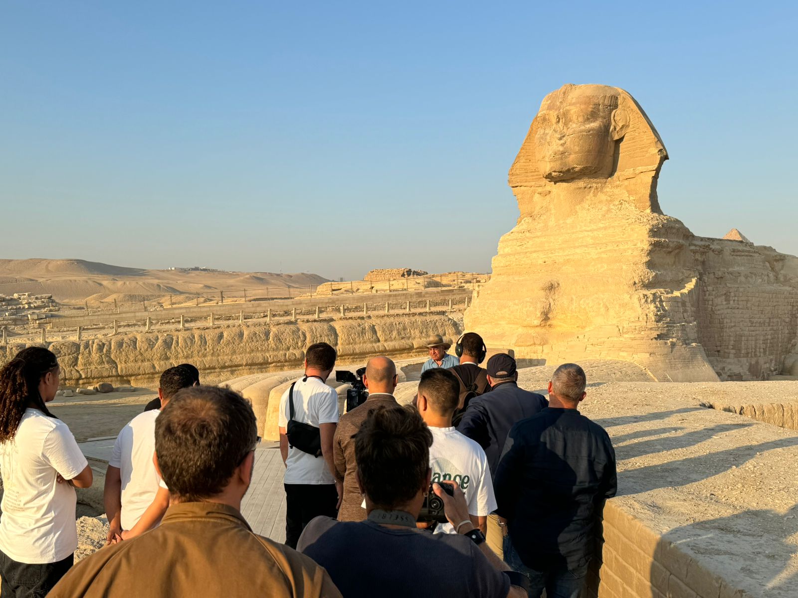 قدم عالم الآثار المصرية الدكتور زاهي حواس كتابا لمصمم الأزياء العالمي ستيفانو ريتشي من أمام تمثال أبو الهول، وذلك في حضور مصمم الأزياء العالمي فليبو ريتشي والوفد المرافق له.