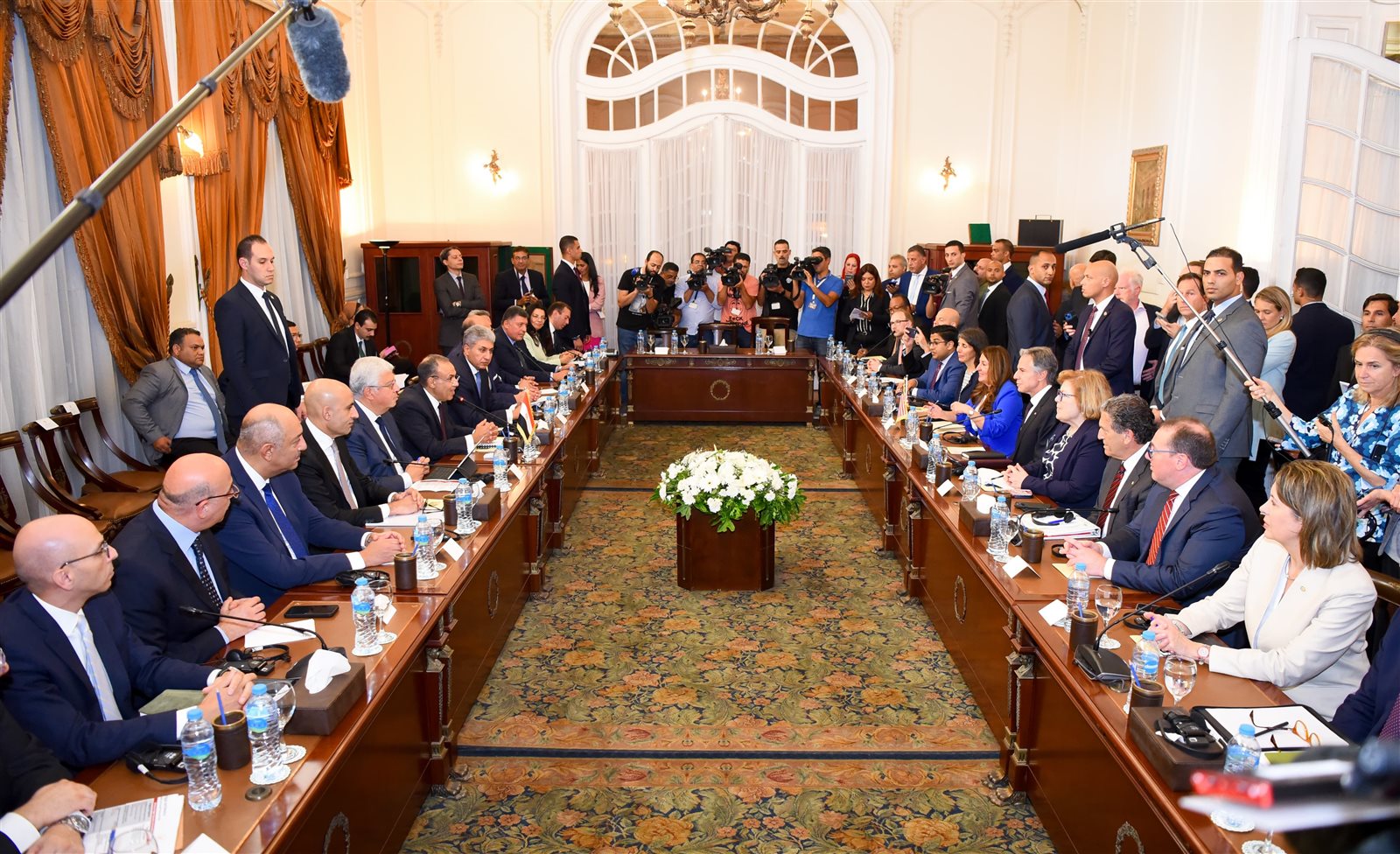 استقبل الدكتور بدر عبد العاطي وزير الخارجية والهجرة وشئون المصريين بالخارج اليوم الأربعاء أنتوني بلينكن وزير الخارجية الأمريكي، حيث عقد الوزيران جلسة مشاورات ثنائية لإطلاق جولة جديدة من الحوار الاستراتيجي المصري - الأمريكي، وذلك بحضور الدكتور محمد أيمن عاشور وزير التعليم العالي وشريف فتحي وزير السياحة والآثار والدكتور محمد عبد اللطيف وزير التربية والتعليم والتعليم الفني.