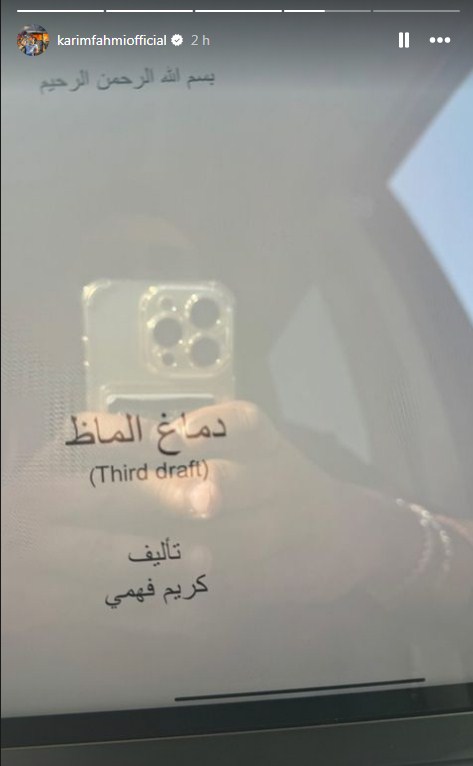 وذلك من خلال نشر صورة على صفحته الرسمية على موقع التواصل الاجتماعى “انستجرام” توضح تفاصيل المشروع الجديد، فيظهر الممثل وهو يحمل “سكريبت" جديد لعمل بعنوان "دماغ الماظ" من تأليف كريم فهمي.