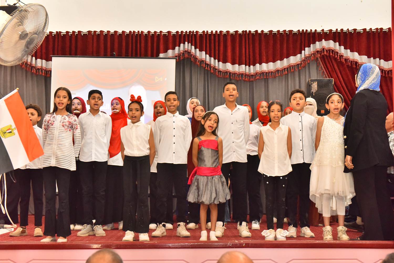 وبدأ الاحتفال في المسرح المركزى بالسلام الوطني لجمهورية مصر العربية ثم القرآن الكريم تلاه الاستماع إلى كورال من طلاب إدارة أبنوب التعليمية وبعض الأغاني الوطنية.