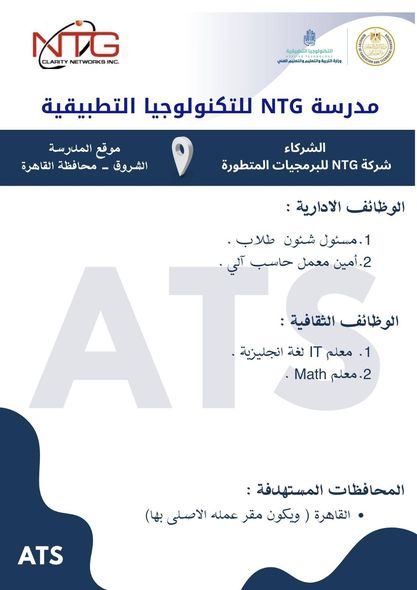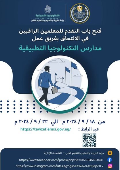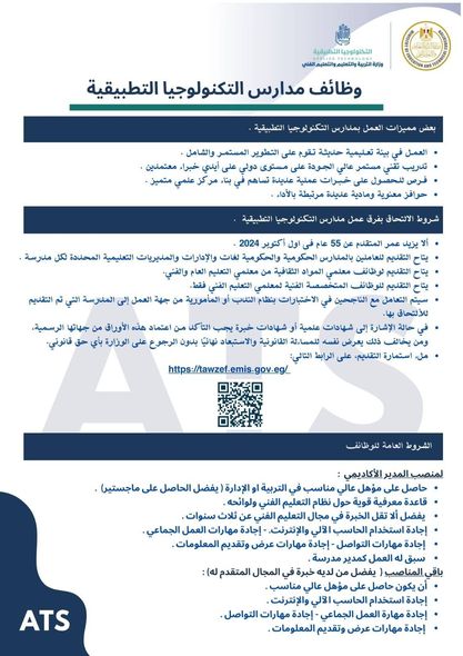 التعليم تكشف آخر موعد للالتحاق بفريق عمل مدارس التكنولوجيا التطبيقية