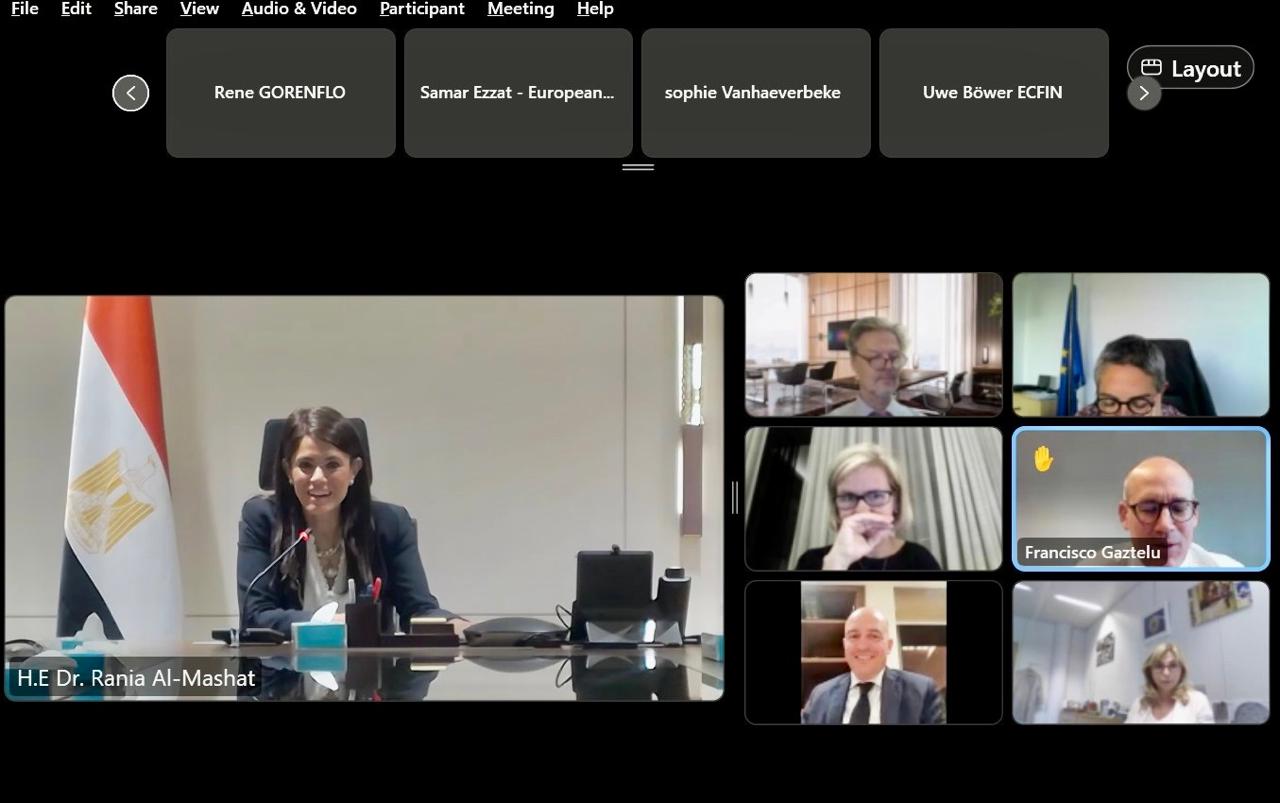 عقدت الدكتورة رانيا المشاط، وزيرة التخطيط والتنمية الاقتصادية والتعاون الدولي، اجتماعا عبر تقنية الفيديو، مع مسئولي الاتحاد الأوروبي، لمناقشة الموقف التنفيذي للمرحلة الأولى من آلية مساندة الاقتصاد الكلي ودعم عجز الموازنة MFA، التي بموجبها يتيح الاتحاد الأوروبي تمويلًا ميسرا بقيمة مليار يورو لمساندة تنفيذ الإصلاحات الهيكلية المحفزة للقطاع الخاص في مصر، وذلك بمشاركة وزارة الخارجية والهجرة وشئون المصريين في الخارج.