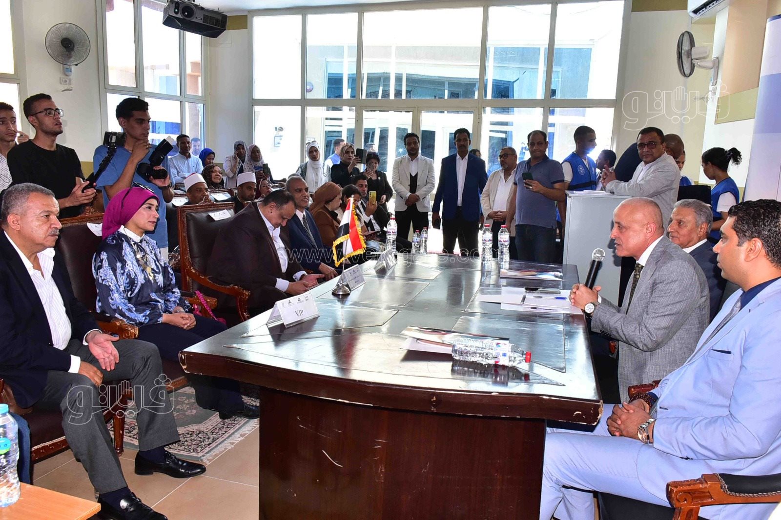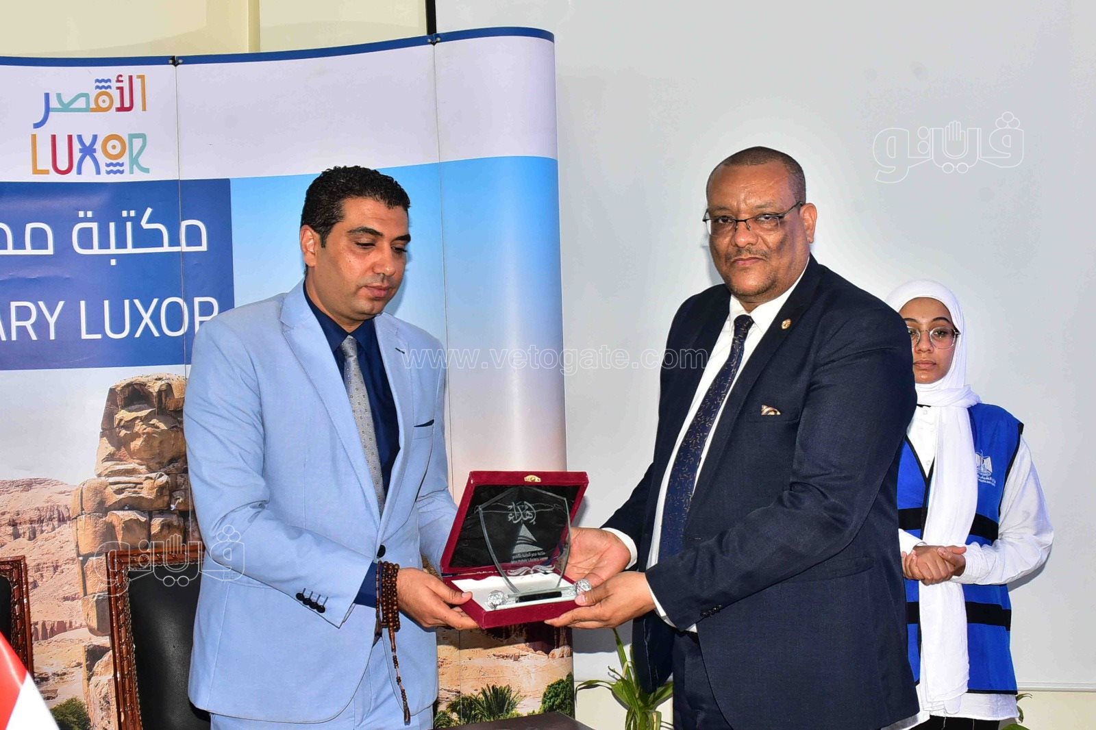 رحب محافظ الأقصر بالحضور، كما أثنى على أهمية الدور الهام لمكتبات مصر العامة في إثراء الحركة الثقافية وتنمية الجوانب الوطنية لدى النشء والشباب بما تقدمه من خدمات ثقافية ودورها الثقافي الفعال في غرس قيم الولاء والانتماء، وعلى الخدمات والأنشطة المختلفة التي تقدمها المكتبة لأبناء المحافظة من مكتبات المتنقلة، والبرامج التدريبية والأنشطة التوعوية للمستفيدين من الأطفال والشبا، وكذا تقديم دورات تدريبية للغات المختلفة وبذلك ساهمت استكمال النشاط الثقافي والسياحي للمدينة.