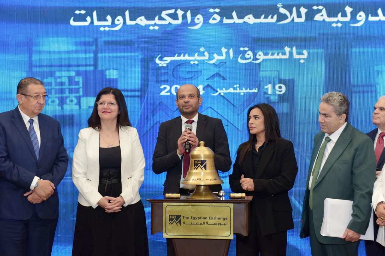 رئيس البورصة يشارك قيادات الشركة الدولية للأسمدة والكيماويات "قرع الجرس"