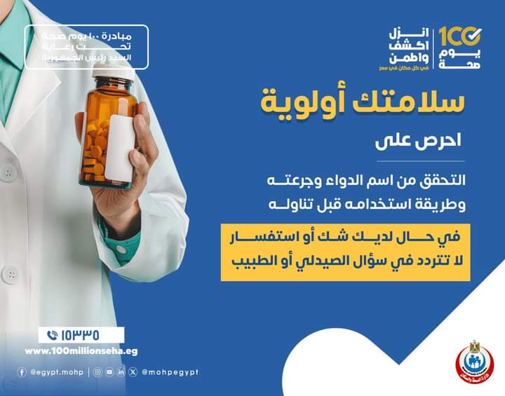 وأشارت إلى ضرورة التأكد من اسم الدواء وجرعته وطريقة استخدامه قبل تناوله، حفاظًا على صحة وسلامة الإنسان وذلك بمناسبة اليوم العالمي لسلامة المرضى.