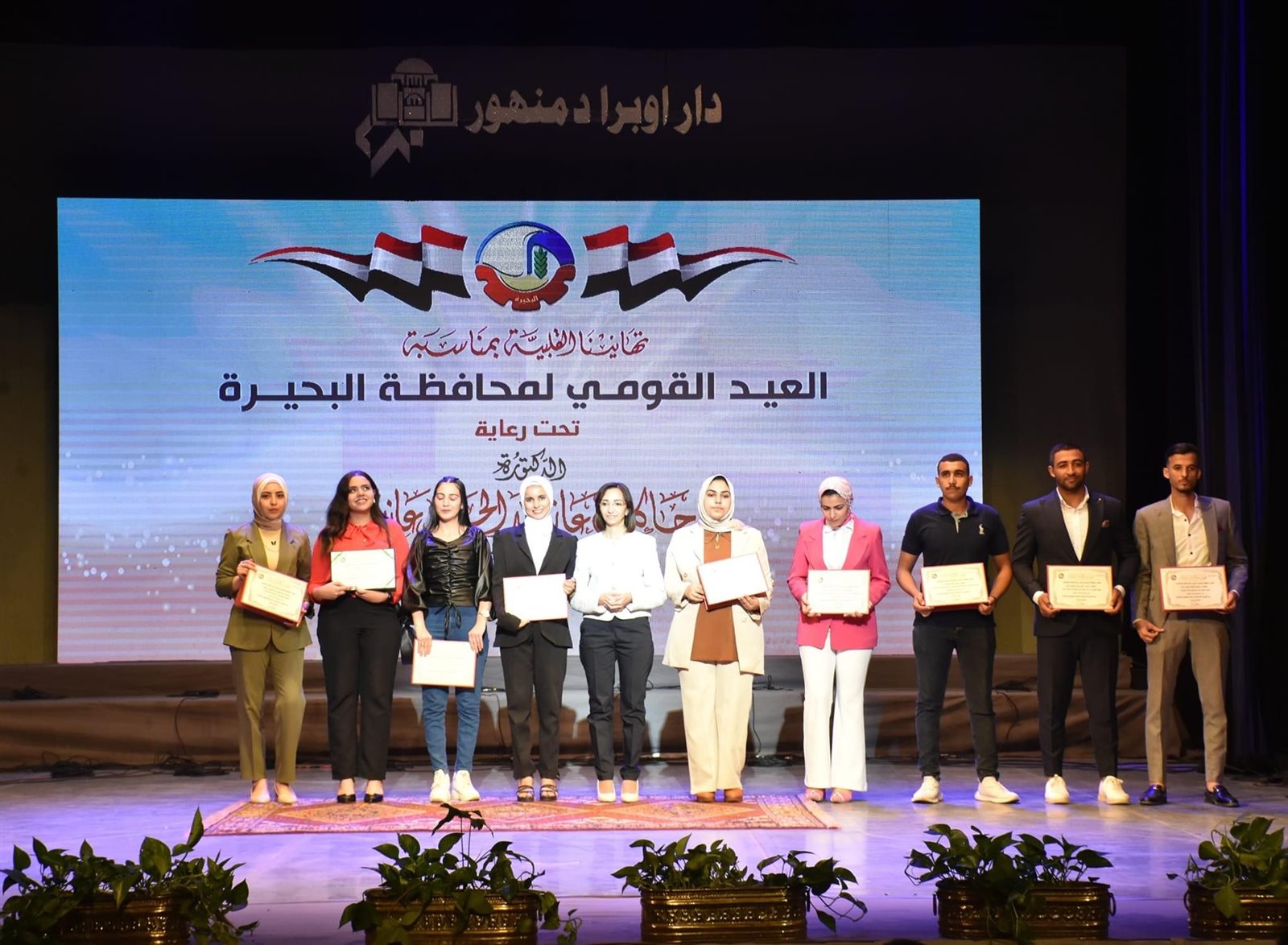كما قامت محافظ البحيرة بتكريم عدد من الطلاب المتفوقين من بينهم ١٢ طالبًا من أوائل الجامعات، و٥٧ طالبا من أوائل الثانوية العامة والتعليم الفني والمكفوفين والأزهر، و٤ من العمال المجتهدين وعددًا من أسر الشهداء.