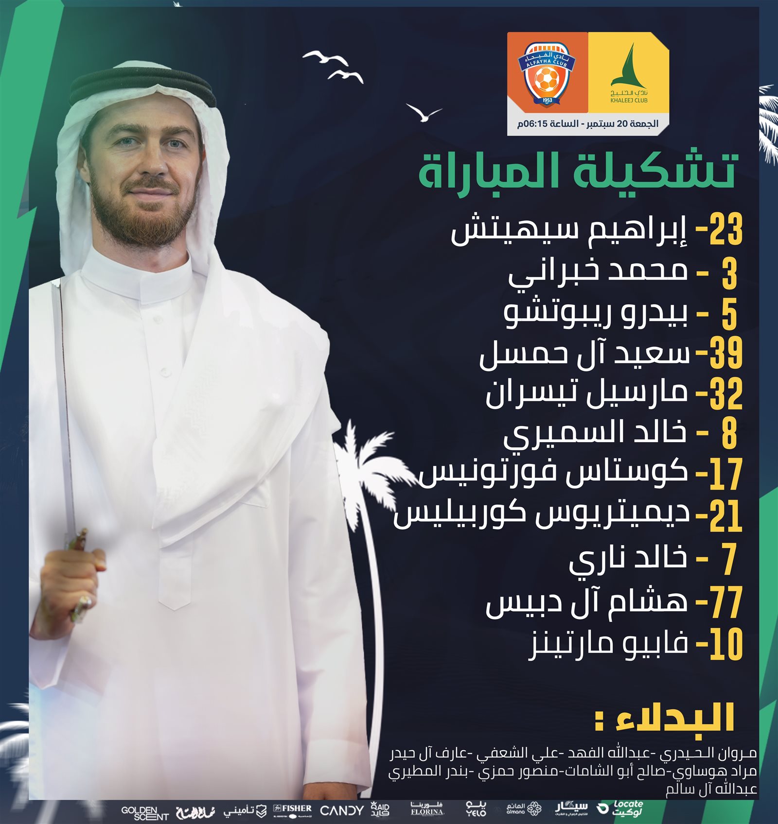 وفي الهجوم: خالد ناري- فابيو مارتينيز–هشام ال دبيس.