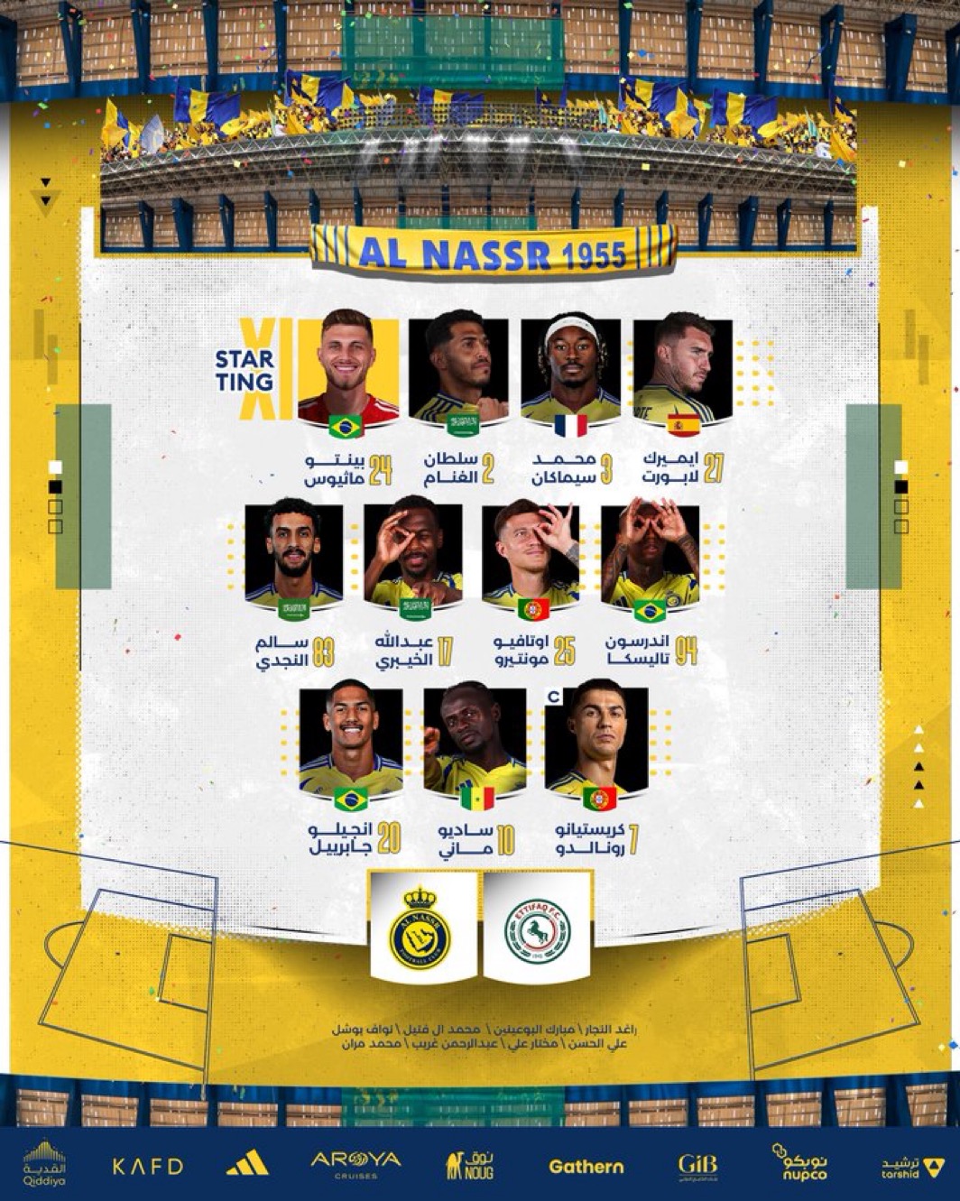 خط الهجوم: أندرسون تاليسكا، كريستيانو رونالدو، ساديو ماني.