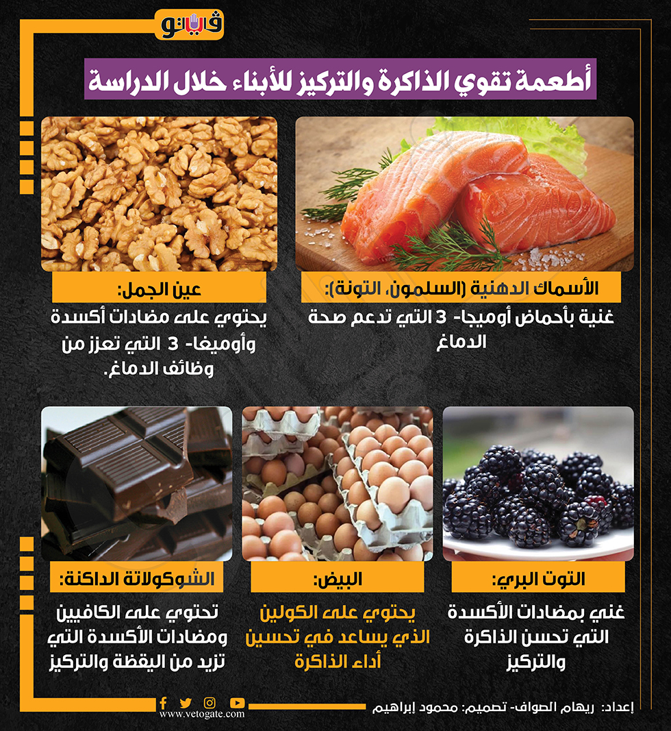 أطعمة تقوي الذاكرة والتركيز للأبناء خلال الدراسة (انفوجراف) الأحد 22/سبتمبر/2024 - 12:29 م 9/22/2024 12:29:04 PM أكلات تقوي الذاكرة ريهام الصواف شارك طباعة 18 حجم الخط شارك طباعة تقوية الذاكرة بالغذاء اكلات تقوي الذاكرة تقوية الذاكرة بالأعشاب تقوية الذاكرة بالاطعمة تقوية الذاكرة أطعمة لتقوية الذاكرة أكلات تساعد على زيادة التركيز أطعمة ومشروبات تزيد من التركيز