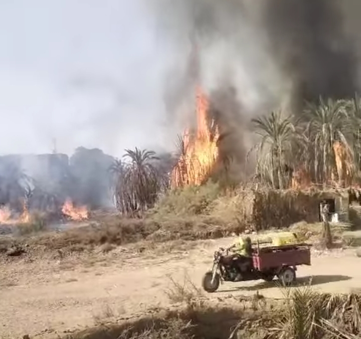 وكان قد شب حريق في مزارع نخيل، اليوم السبت، بإحدى قرى مركز الداخلة في محافظة الوادي الجديد.