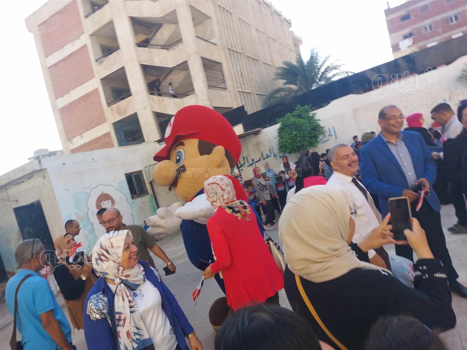 واستقبلت المدارس طلابها بأعلام مصر والبالونات والألعاب الترفيهية، لصفوف الكي جي والصفوف الأولى.