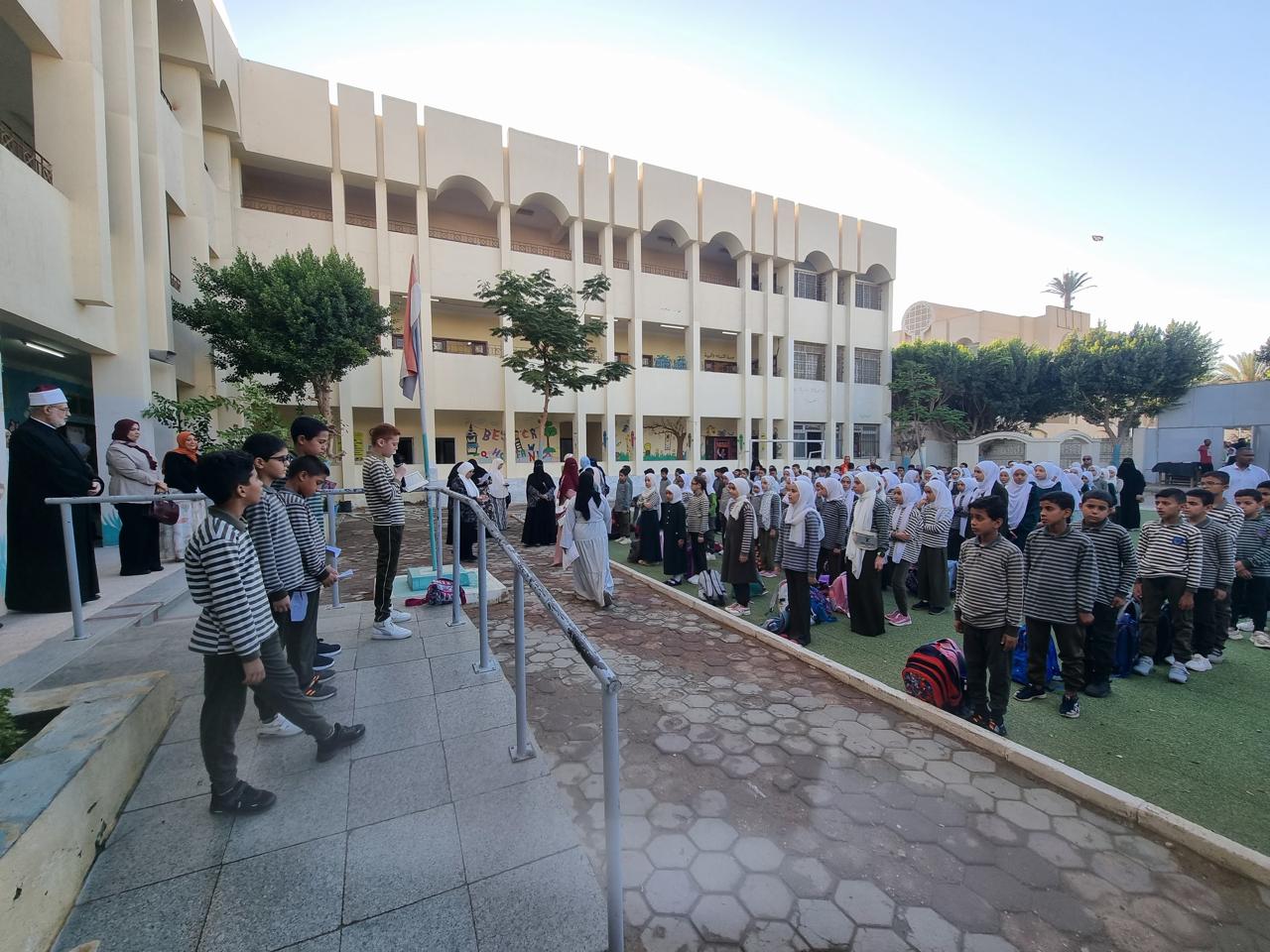 وخلال كلمته بطابور الصباح، هنأ وكيل الأزهر المعلمين والطلاب وجميع القائمين على العملية التعليمية بالمعاهد الأزهرية، بمناسبة بدء العام الدراسي الجديد، ناقلا لهم تحيات فضيلة الإمام الأكبر، شيخ الأزهر، ودعواته لهم بالتوفيق والسداد في عامهم الدراسي الجديد.