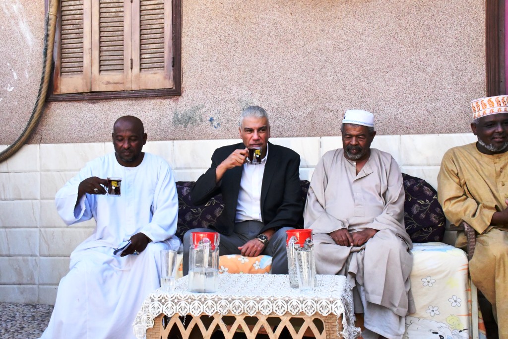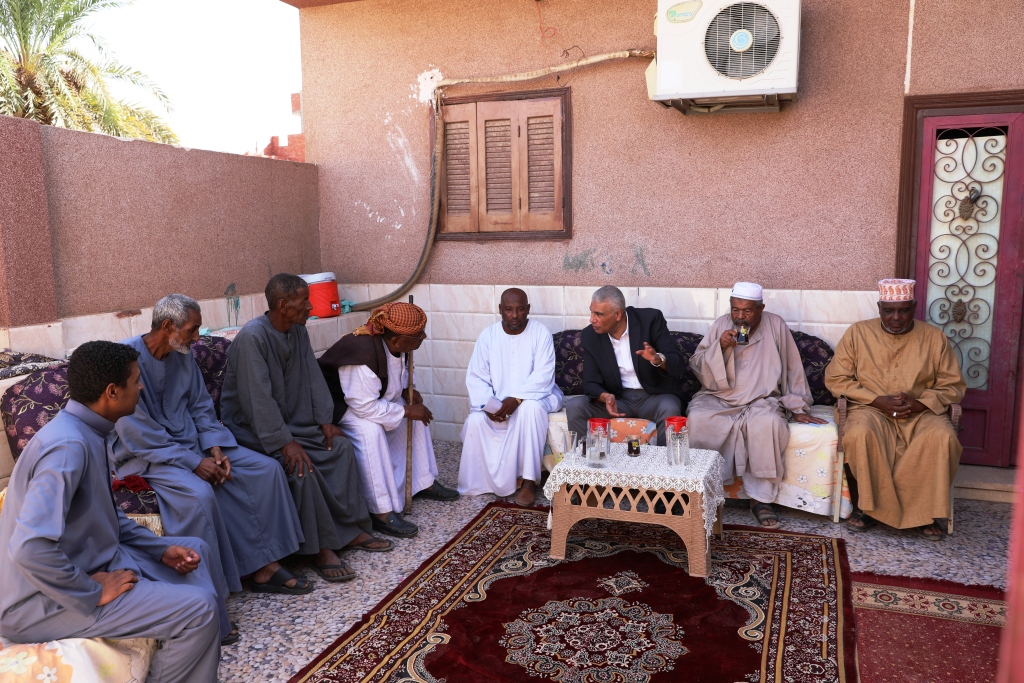محافظ أسوان يتناول المياه والشاي مع أهالى أبو الريش لبث الطمأنينة فى نفوسهم (فيديو وصور)