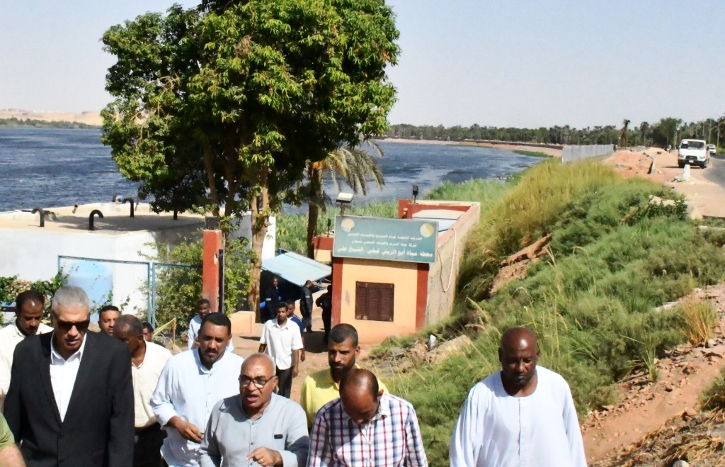 محافظ أسوان يتفقد محطة مياه أبو الريش قبلى ويشرب منها كوب ماء (صور)