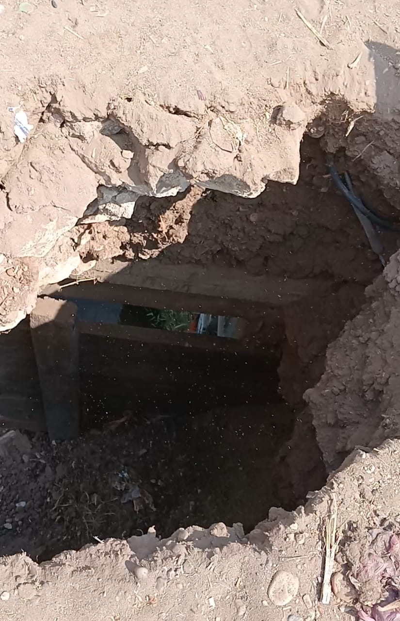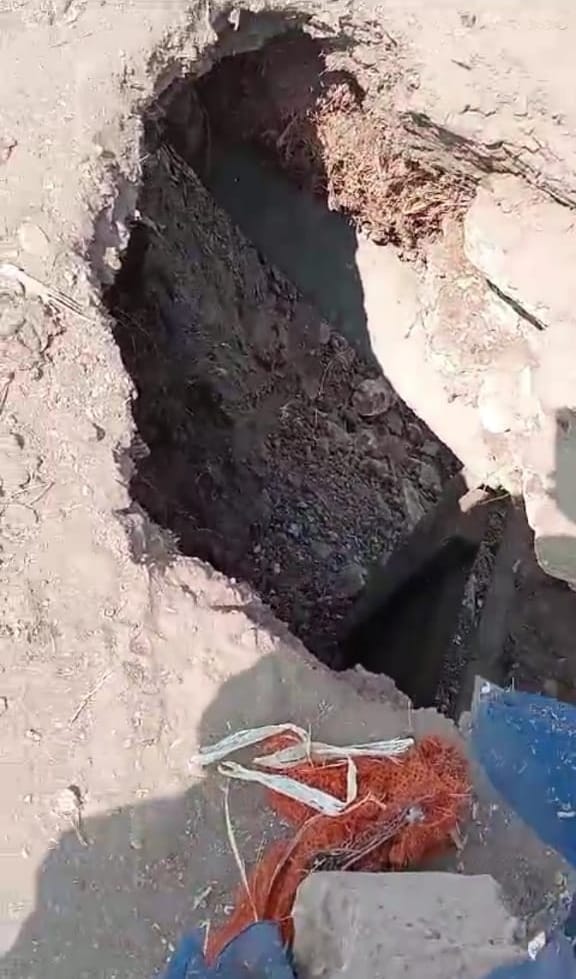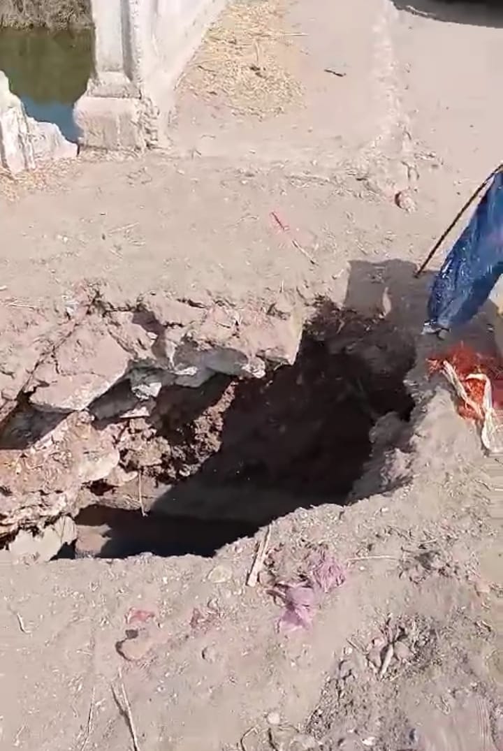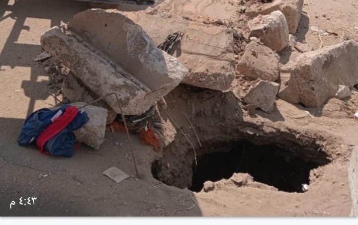 وفوجئ الأهالي بظهور حفرة عميقة في احد جوانب الكوبري فجأة وظهور المياه من أسفلها مما ينذر بكارثة في حالة اتساع تلك الحفرة وتعريض حياة الأهالي والمارة للخطر في حالة سقوط احد بها.