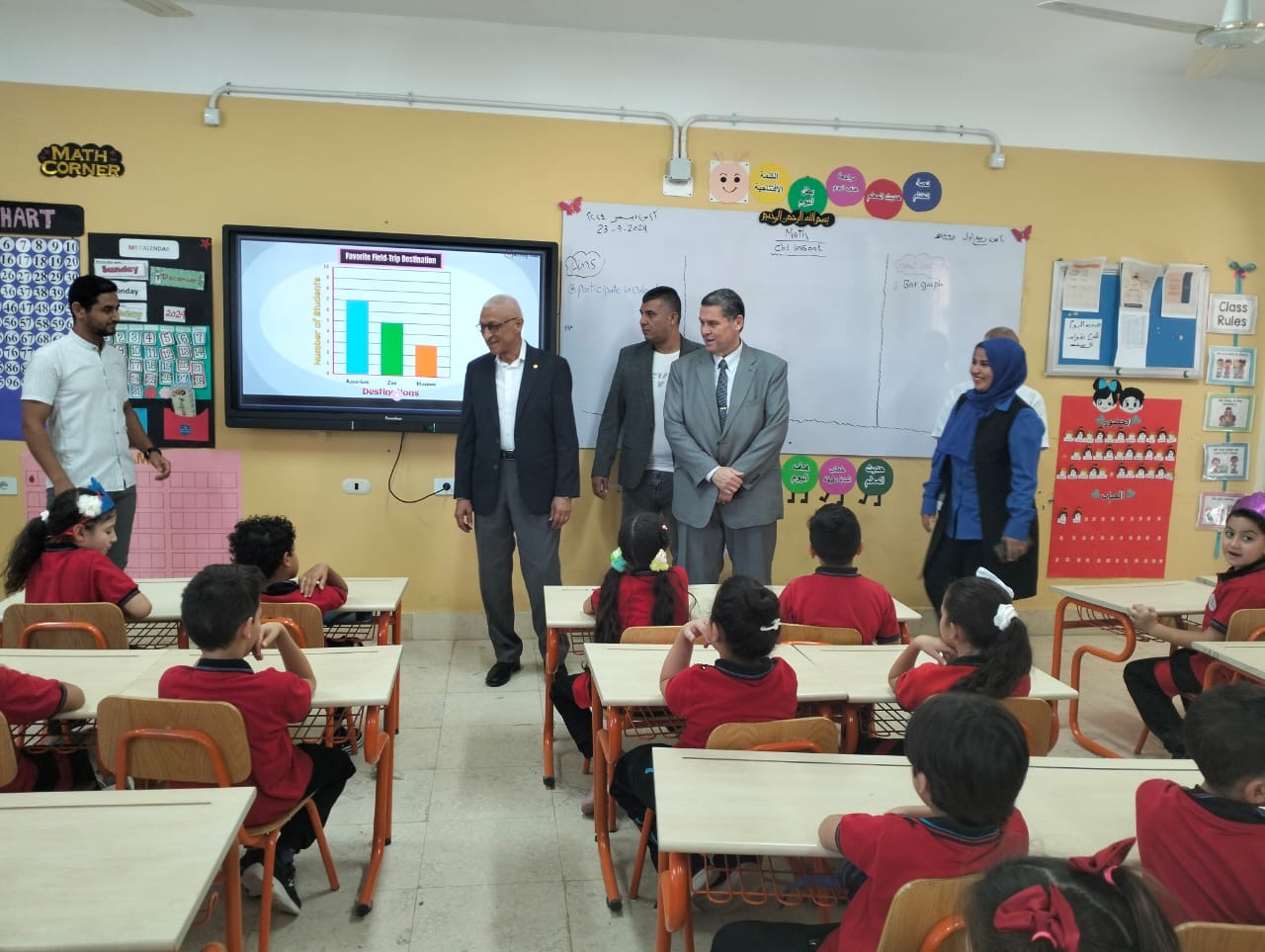 وخلال جولته التفقدية قام المحافظ بتفقد أرض الطابور، الملعب، غرفة الموسيقى،غرف الأنشطة والمهارات الحياتية، حوض الرمل لتعليم الطلبة التشكيل اليدوي، الفصول الدراسية، المكتبة.
