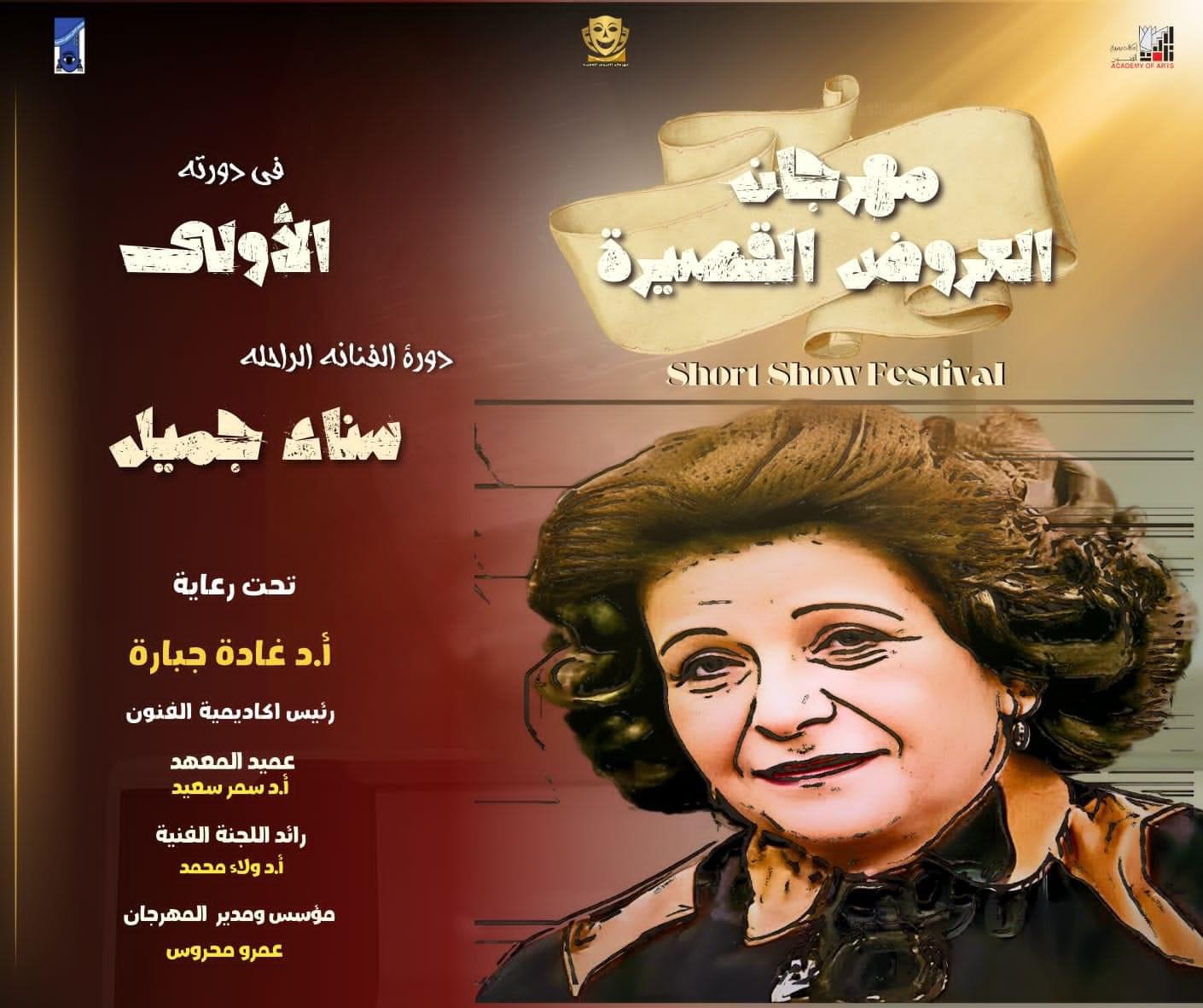 ينظم المعهد العالى للفنون الشعبية، تحت رعاية الدكتورة غادة جبارة رئيس أكاديمية الفنون، وإشراف الدكتورة سمر سعيد عميد المعهد، مهرجان العروض القصيرة في دورته الأولى والتي تحمل اسم الفنانة الراحلة سناء جميل.
