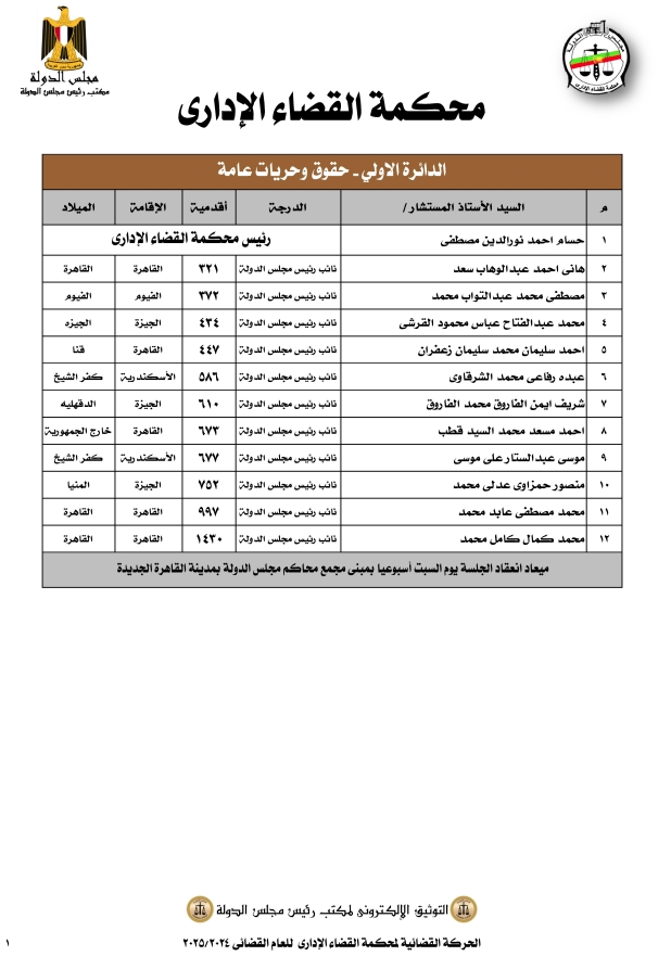 بالأسماء، الحركة القضائية لمحاكم القضاء الإداري بمجلس الدولة
