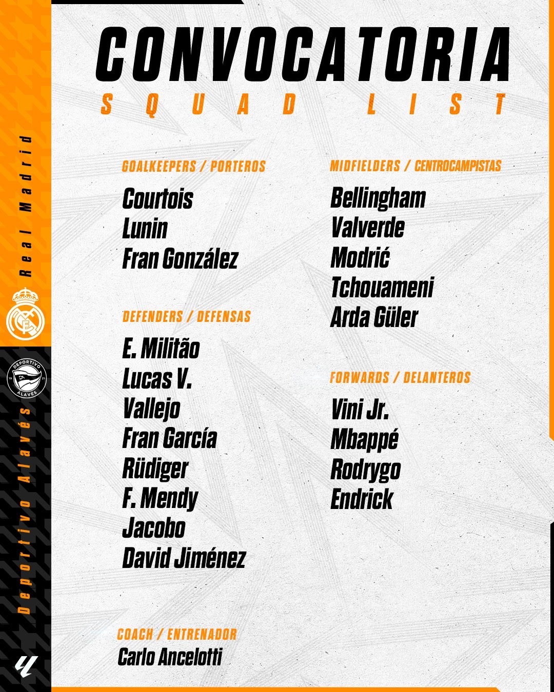 قائمة ريال مدريد أمام ألافيس