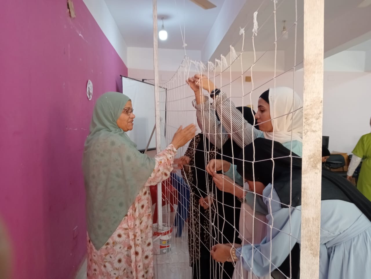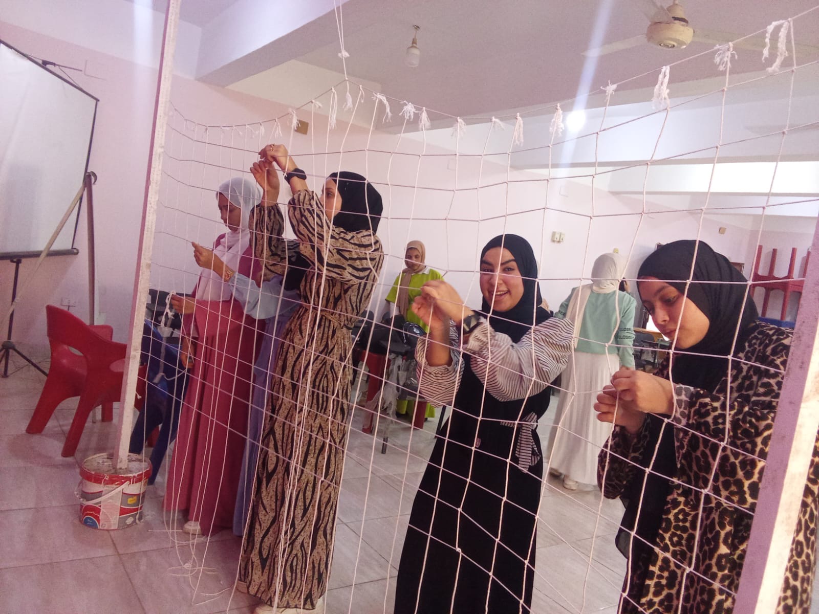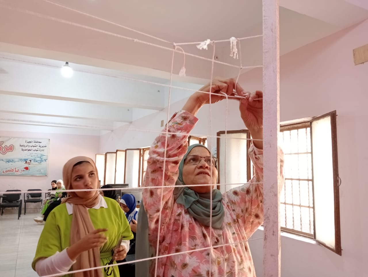 ضمن مبادرة بداية، فتيات يتعلمن فن المكرمية لصناعة شبكات الملاعب بالحوامدية (صور)