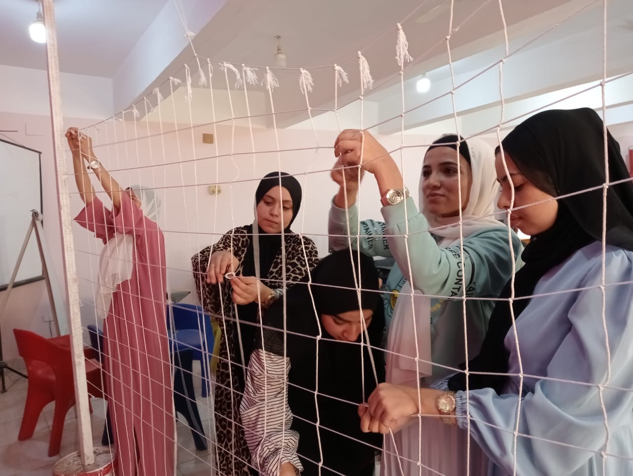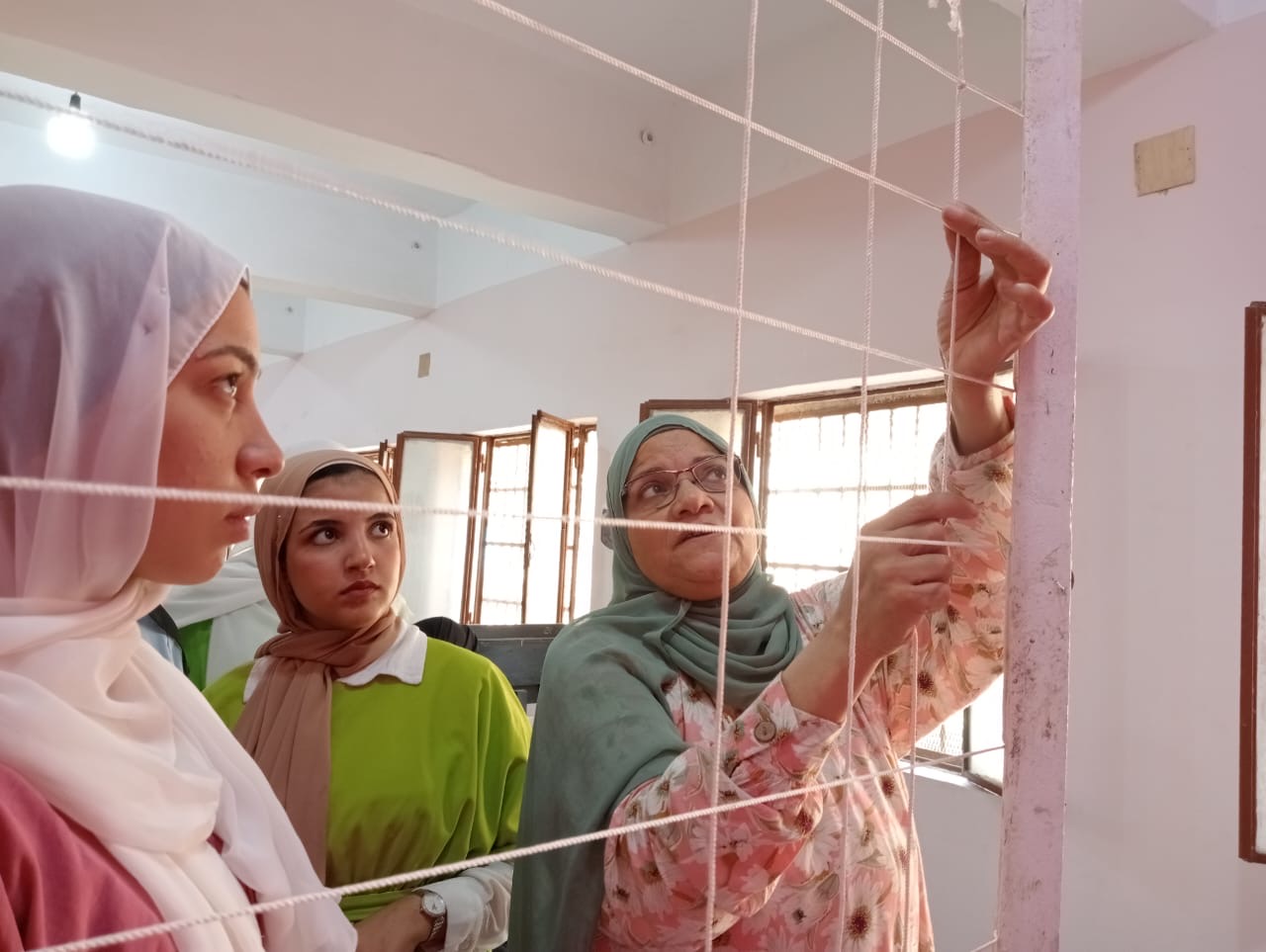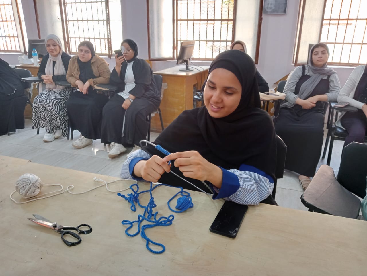 ضمن مبادرة بداية، فتيات يتعلمن فن المكرمية لصناعة شبكات الملاعب بالحوامدية (صور)