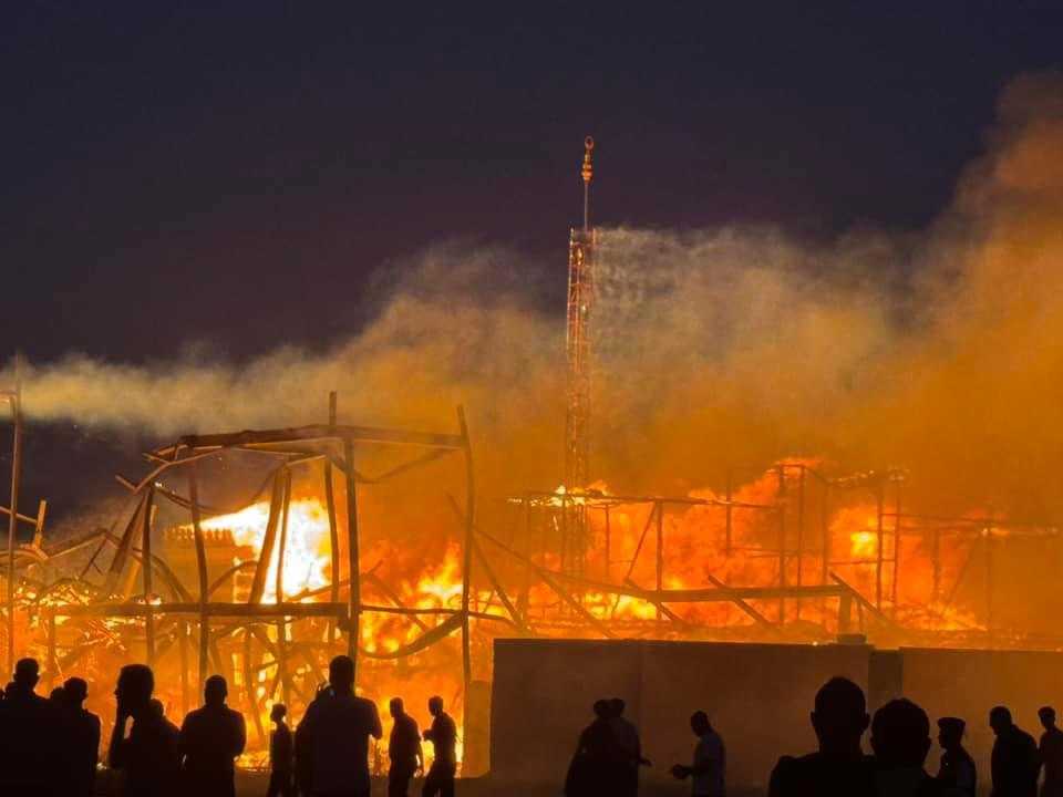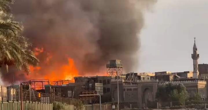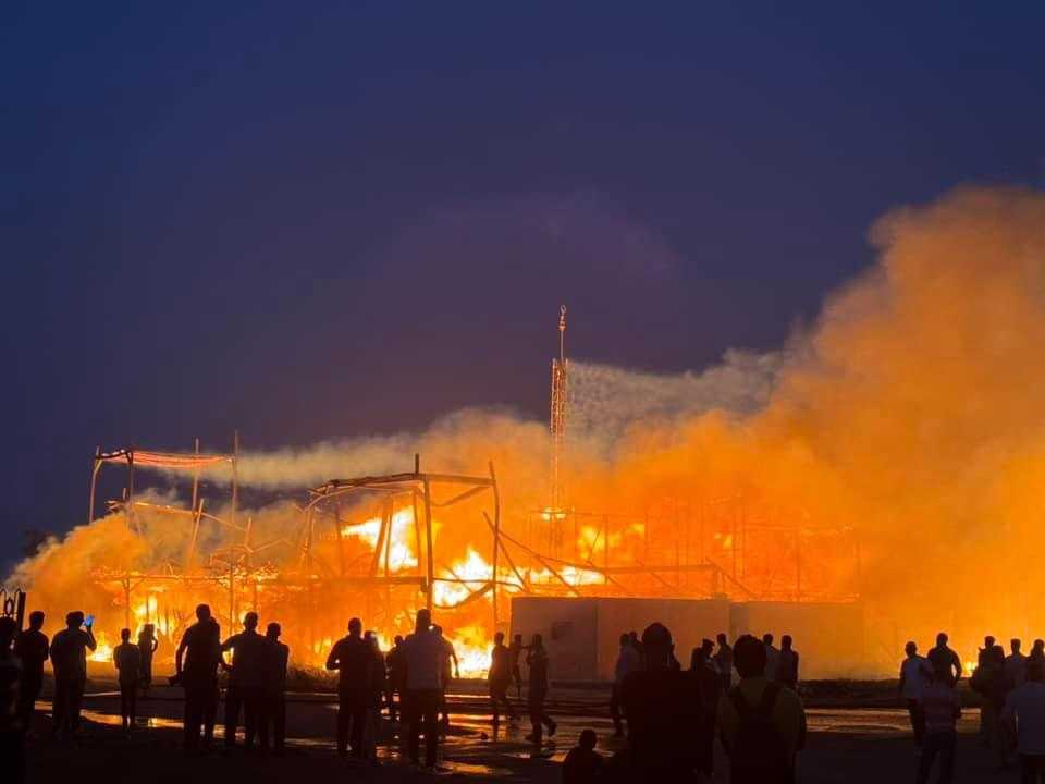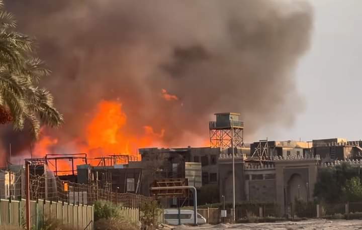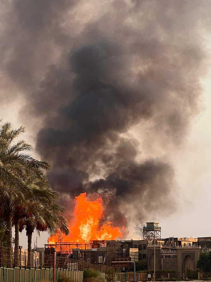أظهرت لقطات مصورة حجم النيران التي التهمت الحي الإسلامي بمدينة الإنتاج الإعلامي.