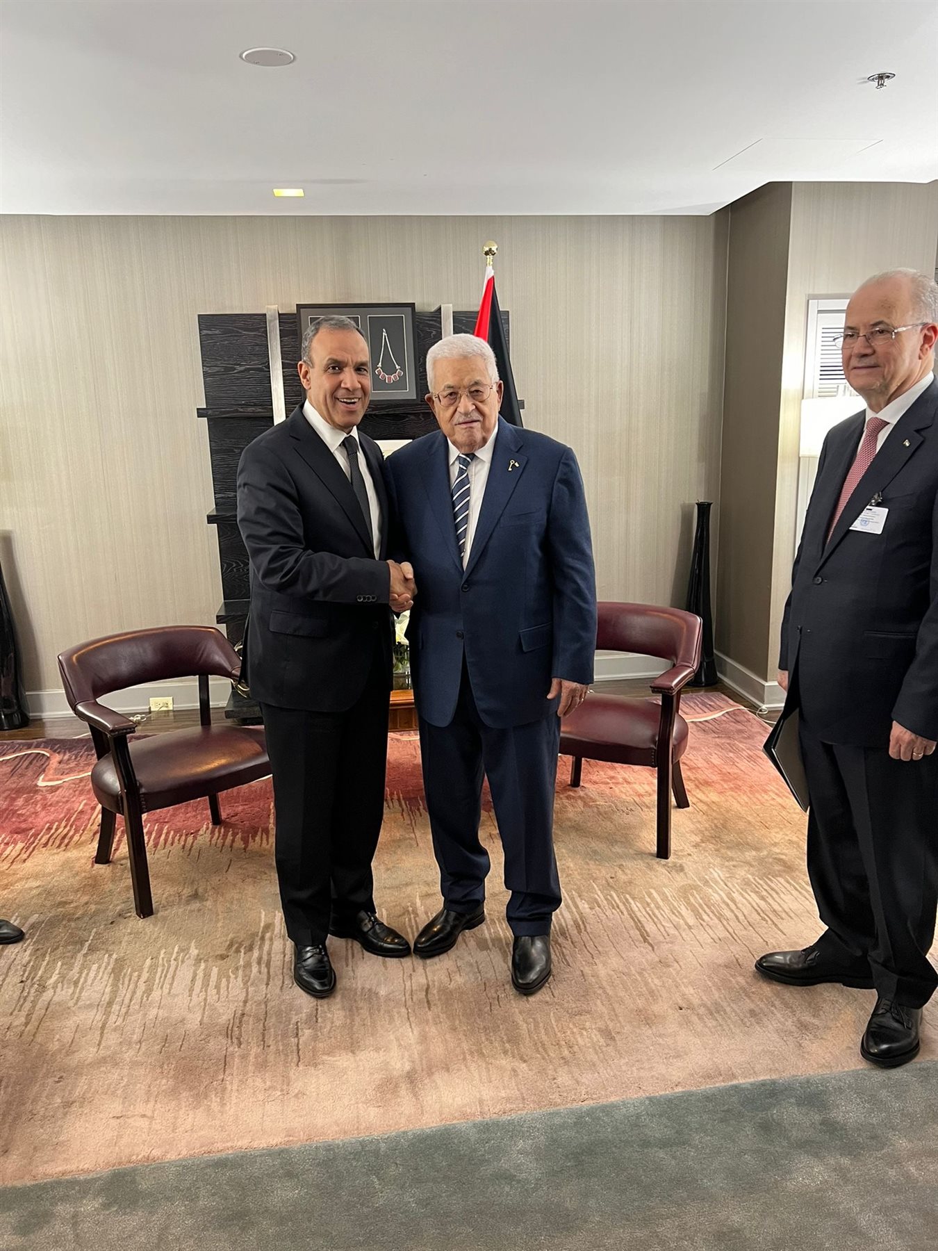 التقى الدكتور بدر عبد العاطي، وزير الخارجية والهجرة وشئون المصريين بالخارج اليوم مع الرئيس الفلسطيني محمود عباس على هامش مشاركته في اجتماعات الشق رفيع المستوى للدورة 79 للجمعية العامة للأمم المتحدة بنيويورك.
