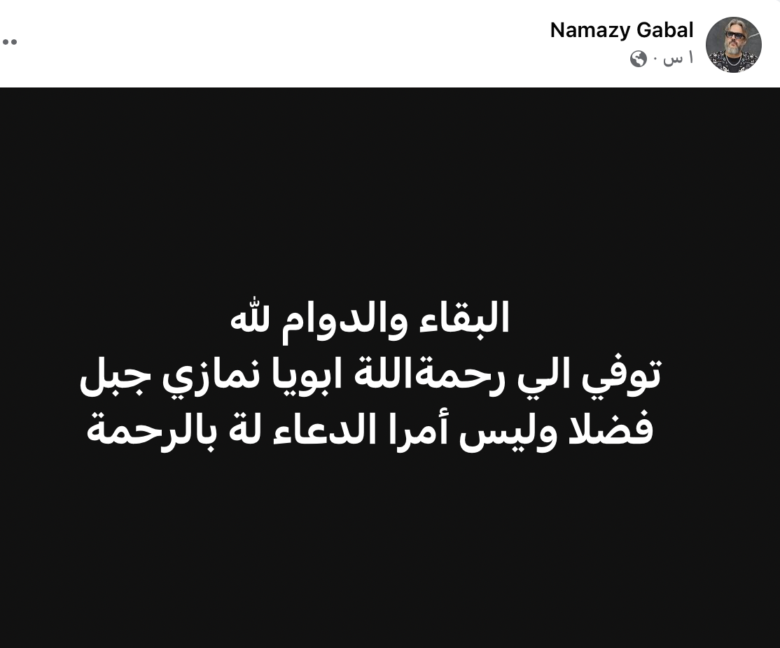 حيث نشر حساب الراحل نمازي صورة مكتوب بها “البقاء والدوام لله.. توفى إلى رحمة الله أبويا نمازي جبل فضلًا وليس أمرًا الدعاء له بالرحمة”.