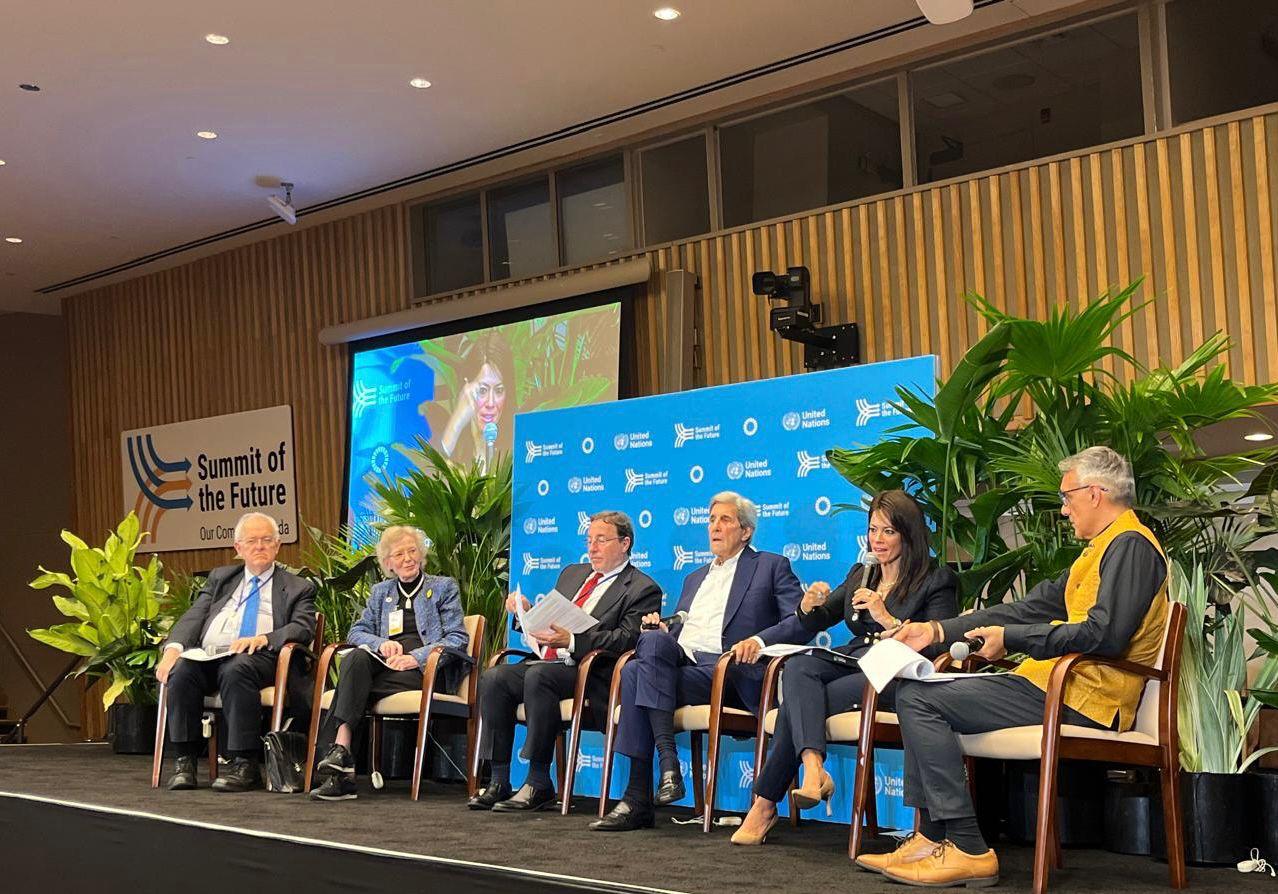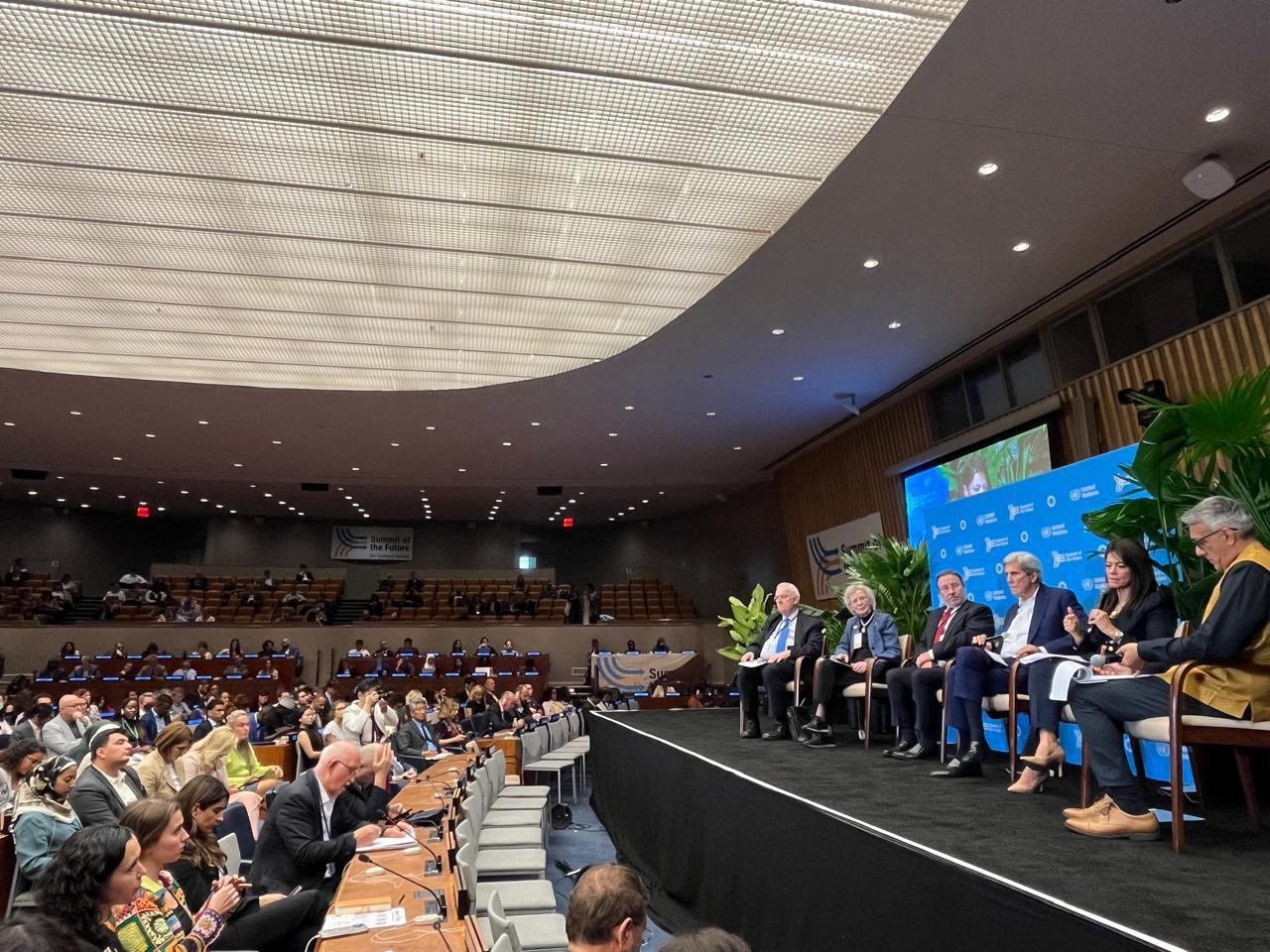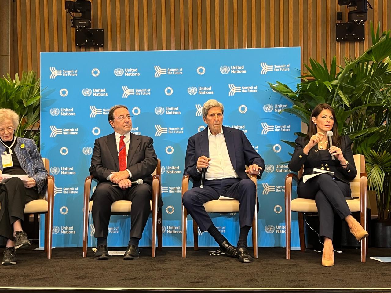 وشارك في الجلسة أكيم شتاينر، مدير برنامج الأمم المتحدة الإنمائي؛ وجون كيري، وزير الخارجية الأمريكي السابق ومبعوث الرئيس الأمريكي للمناخ؛ وماري روبنسون، الرئيس الأسبق لدولة أيرلندا، وخوسيه أنطونيو أوكامبو، ووزير المالية السابق بكولومبيا.