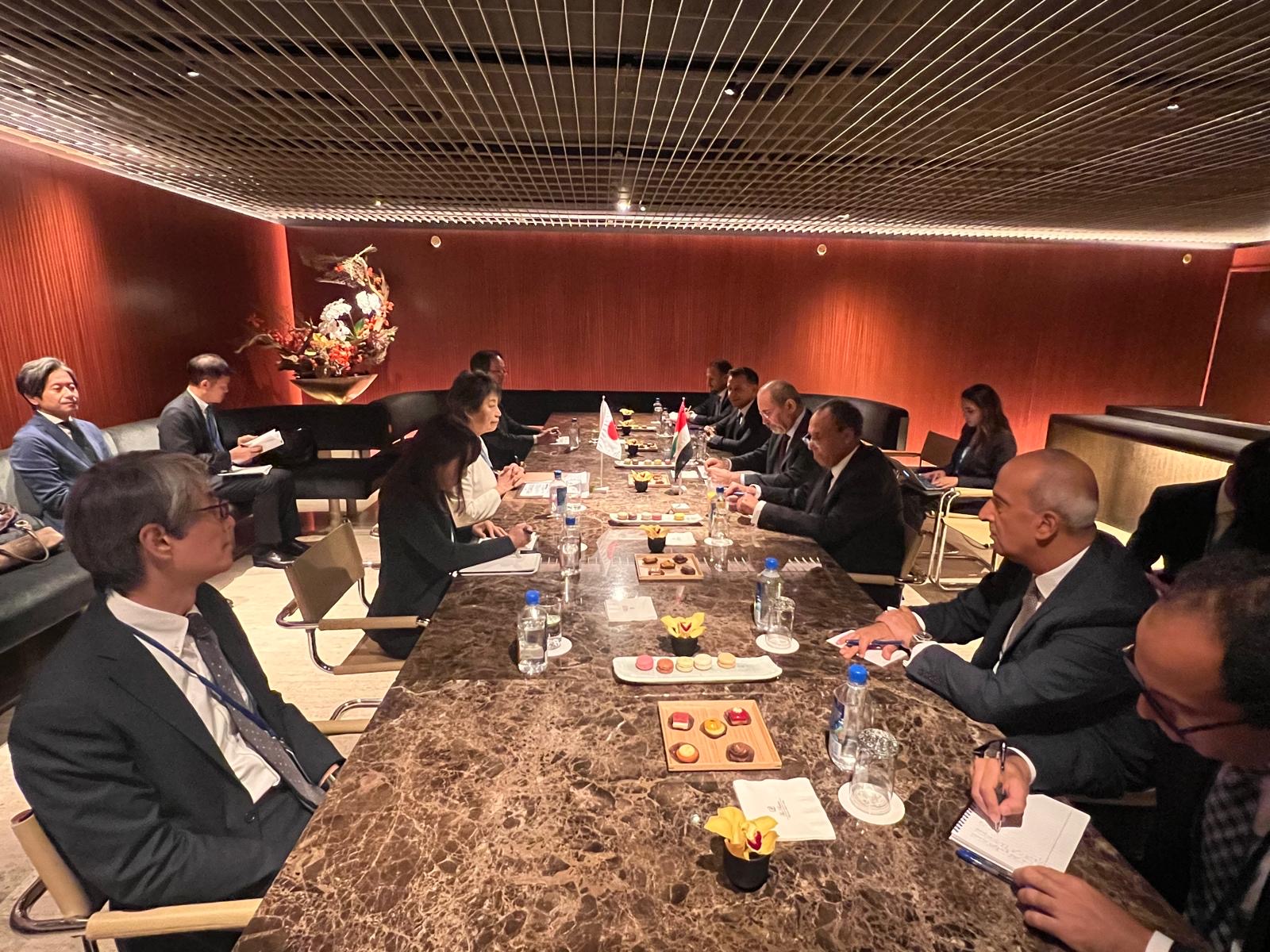 وأشاد وزير الخارجية بحرص الجانب الياباني على التنسيق والتشاور مع مصر والأردن في إطار آلية التشاور الثلاثي حول مستجدات القضية الفلسطينية، وأعرب عن تقدير مصر للموقف الياباني الداعم لحل الدولتين وتطلعها لاستمرار هذا النهج.