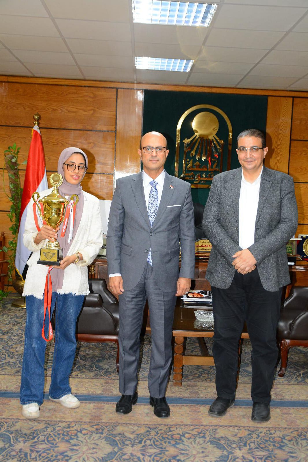 رئيس جامعة أسيوط يكرم الطالبة الفائزة بمسابقة رالي مصر 2024 لريادة الأعمال