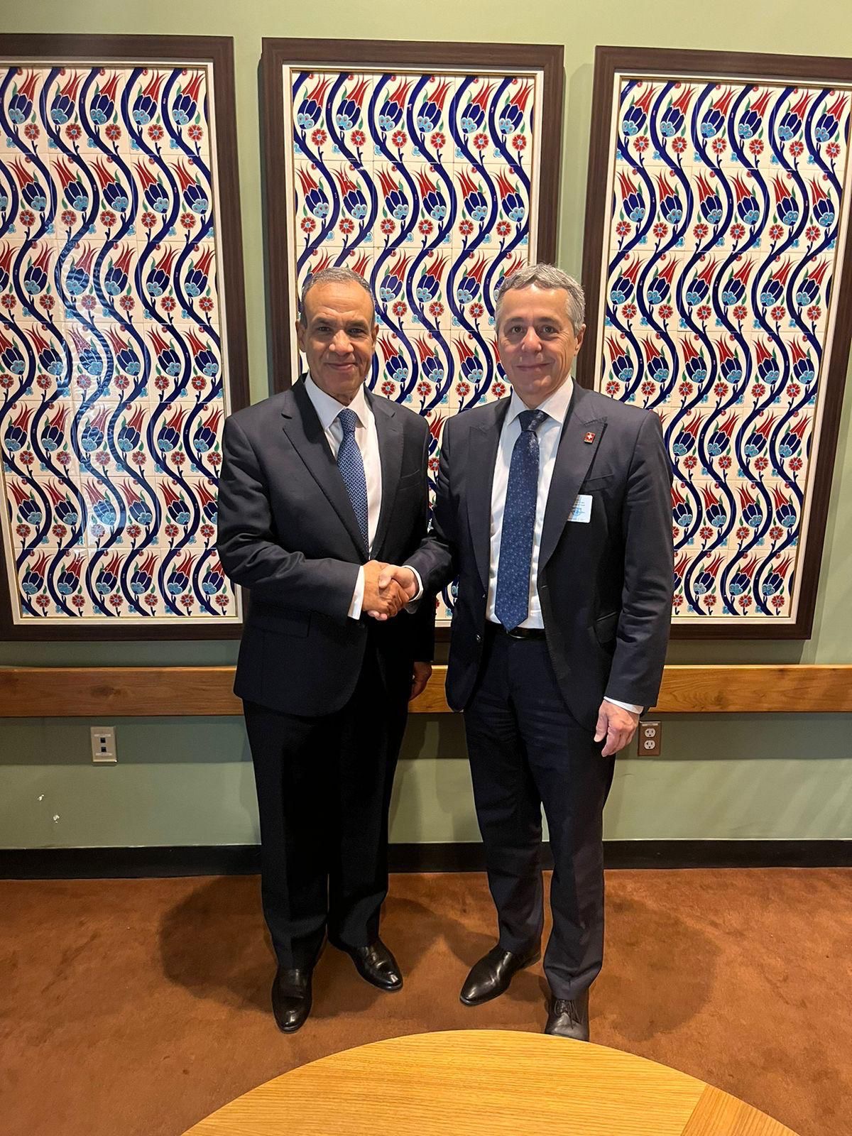 على هامش الجمعية العامة للأمم المتحدة، وزير الخارجية يبحث مع نظيره السويسري وقف الحرب على غزة