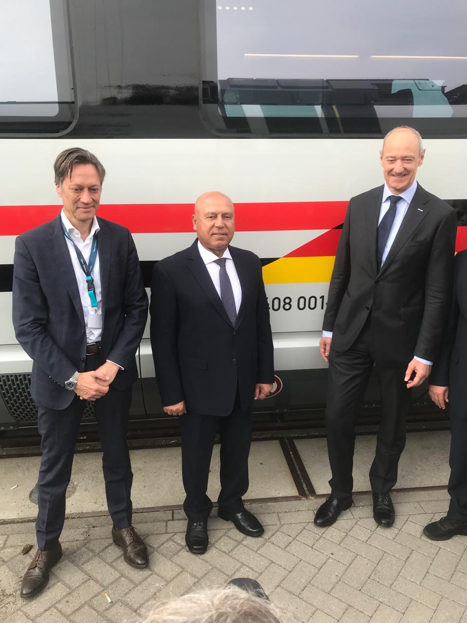 تفقد الفريق مهندس كامل الوزير نائب رئيس مجلس الوزراء للتنمية الصناعية وزير الصناعة والنقل ووزير النقل الألماني ورئيس وقيادات شركة سيمنز العالمية لقطار فيلارو المخصصة لـ قطارات الخط الأول من شبكة القطارات الكهربائية السريعة المصرية.