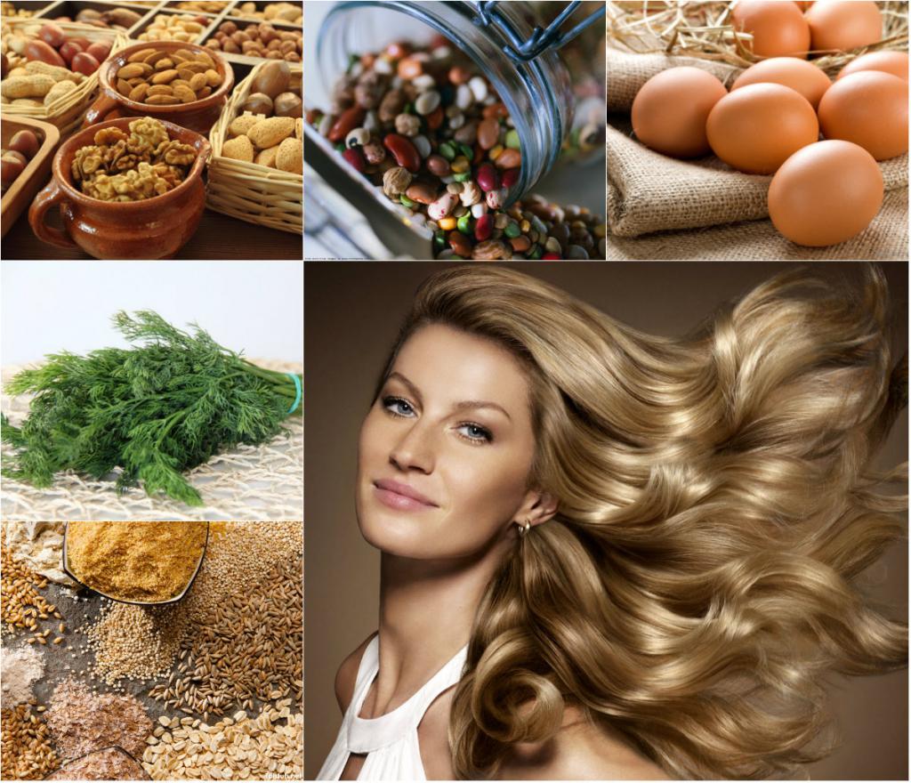 الشعر مكون بشكل رئيسي من الكيراتين، وهو نوع من البروتين. لذلك، تناول كمية كافية من البروتين يعد أساسيًّا لصحة الشعر. نقص البروتين قد يؤدي إلى ضعف الشعر وجعله أكثر عرضة للتكسر.