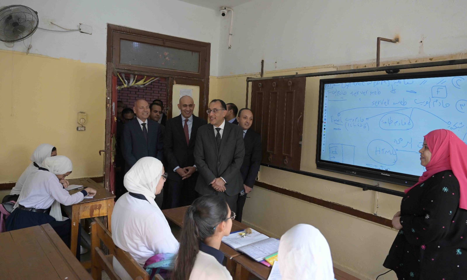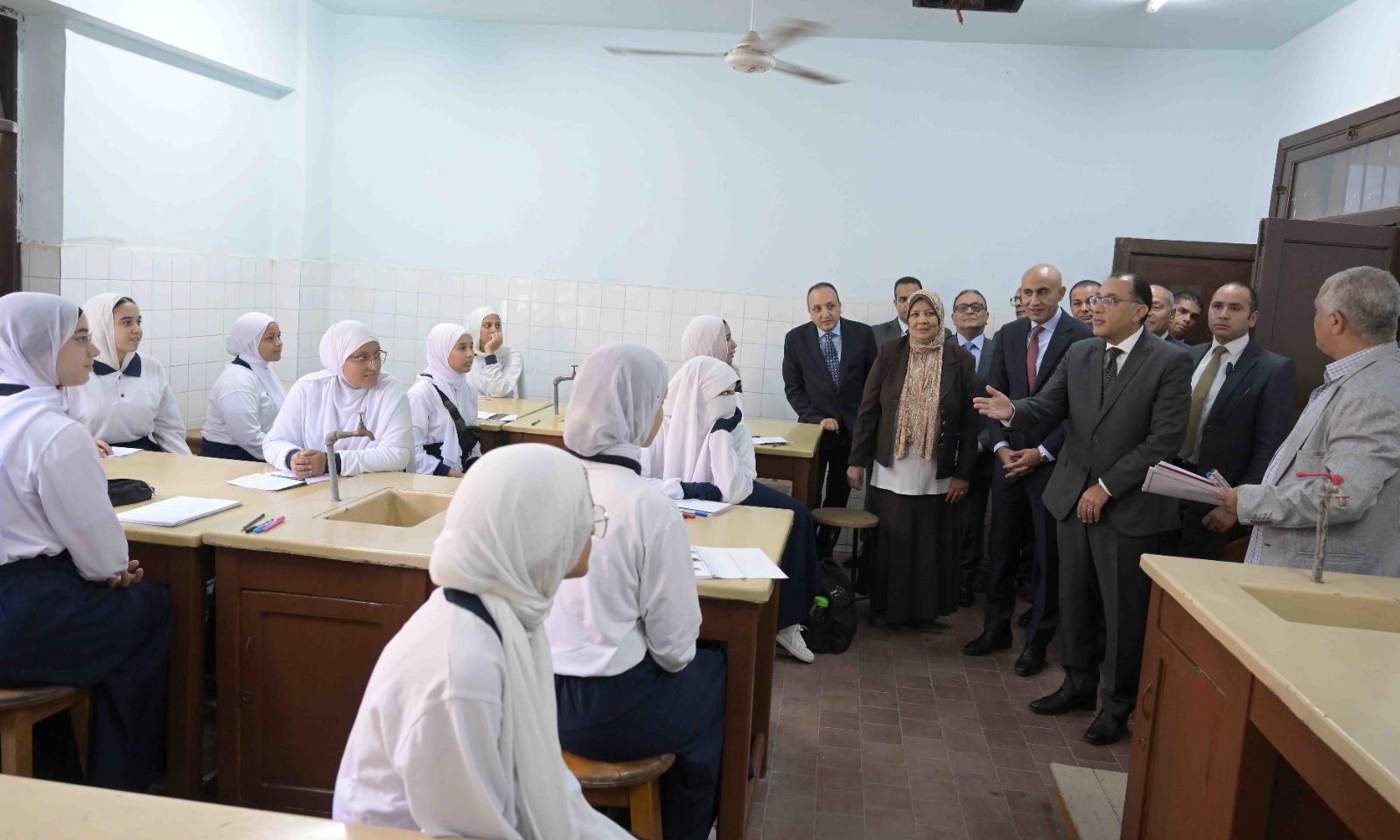 وبدأ الدكتور مصطفى مدبولي زيارته للمدرسة بتفقد عدد من الفصول للصفين الأول والثاني الثانوي، وخلال تواجده بأحد فصول المدرسة التي أنشئت عام 1991، أجرى مدبولى حوارا وديا مع عدد من طالبات الصف الأول الثانوي حول المناهج الدراسية، ورأيهن في كثافة الفصول بعد القرارات التي تم اتخاذها لتخفيض عدد الطالبات في الفصل الواحد، حيث أشادت الطالبات بتقليص عدد الطالبات في الفصل، وأكدن أن هذا الأمر انعكس بشكل إيجابي عليهن من حيث أتاح لهن أجواء صحية أكثر، وفرصة أكبر للاستيعاب والاستفسار من المعلمين حول المناهج الدراسية.