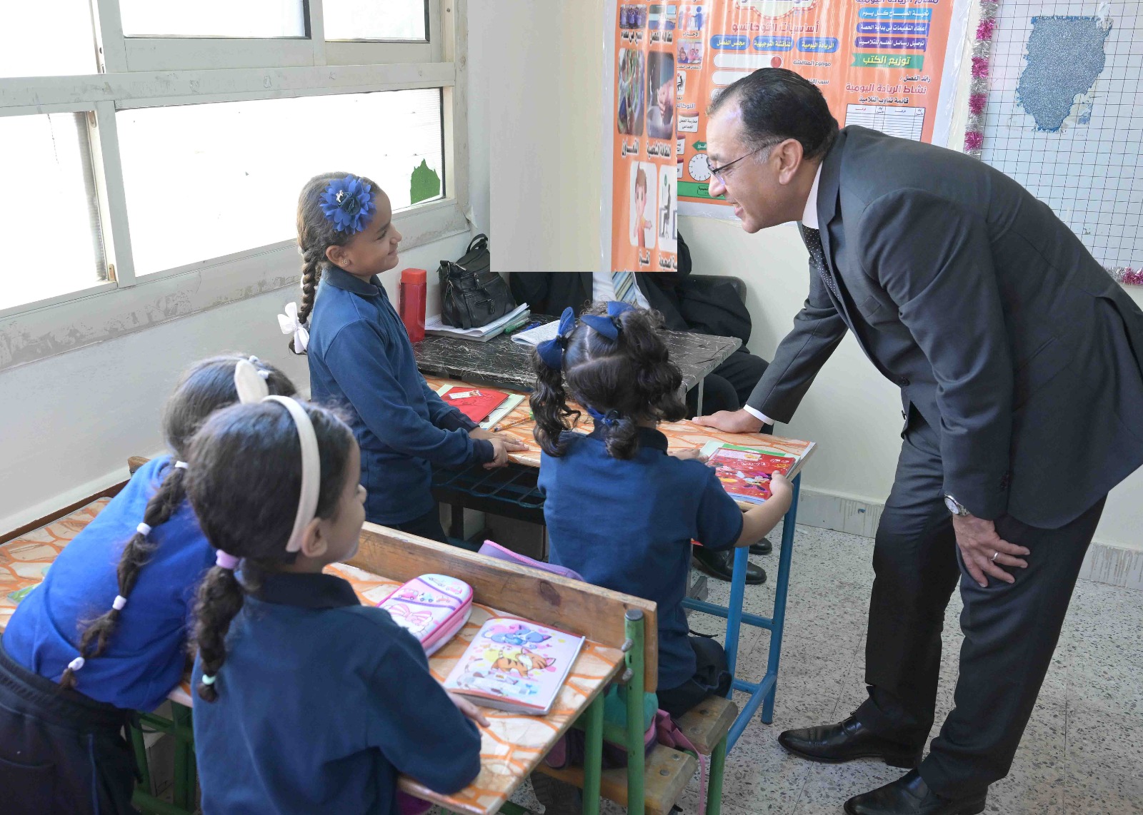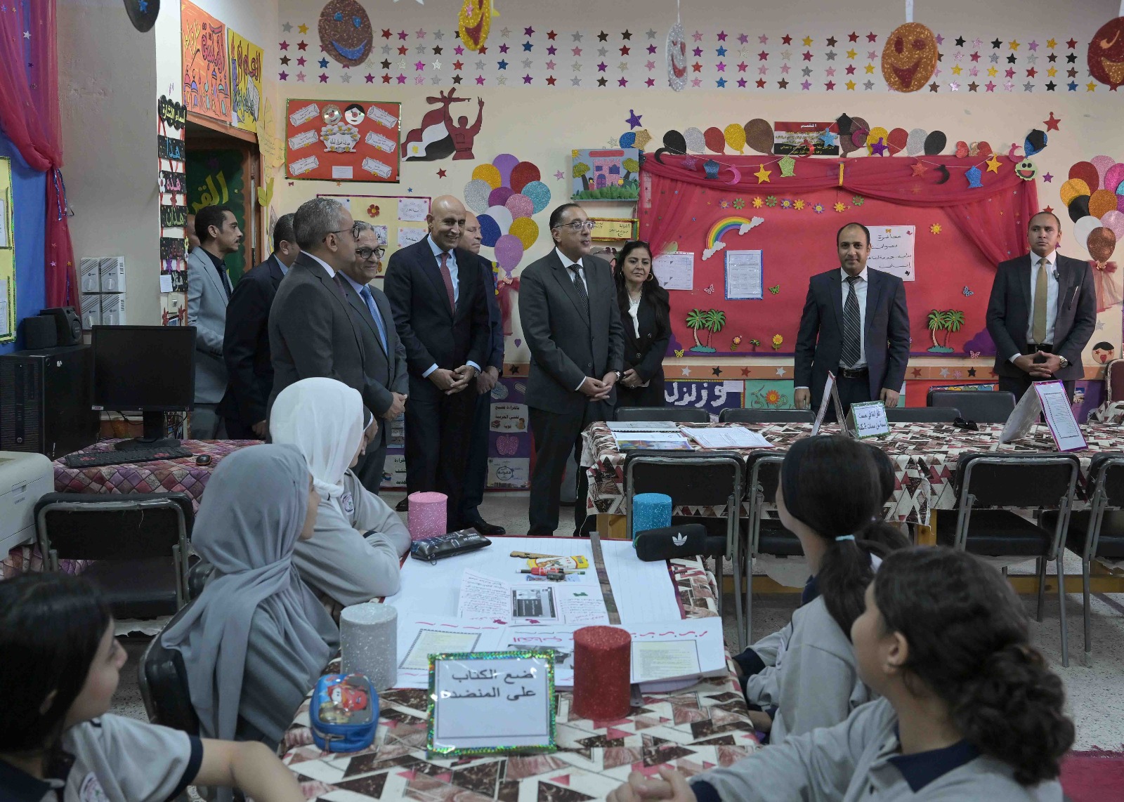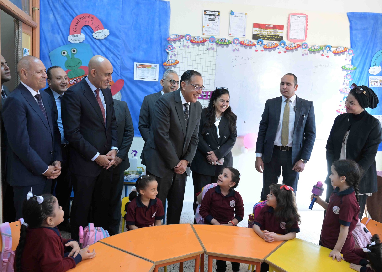 وخلال جولته بالمدرسة، تفقد رئيس مجلس الوزراء أحد فصول مرحلة رياض الأطفال KG1، ورحب الأطفال بالدكتور مصطفى مدبولي مُنشدين نشيدا باللغة الانجليزية، كما تفقد العيادة الصحية بالمدرسة، للتأكد من مدى جاهزيتها لتقديم الخدمات الطبية المناسبة للطالبات، وقدمت دينا موسي، مديرة المدرسة، شرحا حول مكونات المدرسة والتجهيزات المتوافرة بها، وعدد الفصول والكثافة الطلابية حاليا بعد اجراءات تخفيض الكثافة.