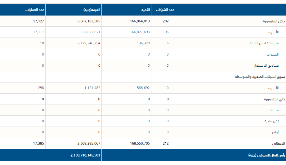 - ارتفع مؤشر "إيجي إكس 30" بنسبة 0.28% عند مستوى 30.958.90 نقطة.