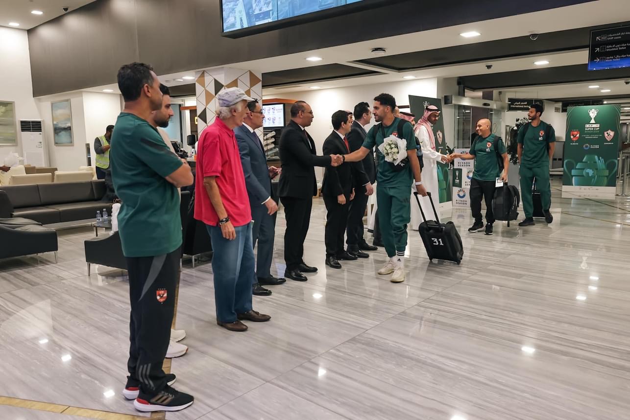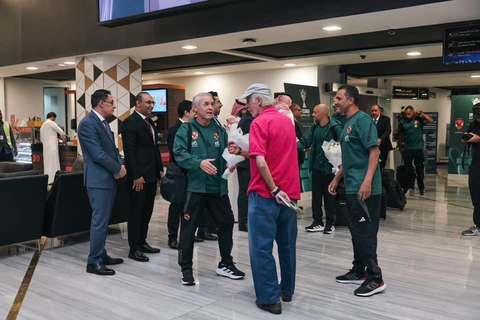 وحرص الكابتن سامي قمصان المدرب العام والقائم بأعمال مدير الكرة بالنادي الأهلي، وسمير عدلي المدير الإداري، على استقبال بعثة الفريق الأول لكرة القدم بالنادي فور وصولها إلى مطار الرياض بالمملكة العربية السعودية.