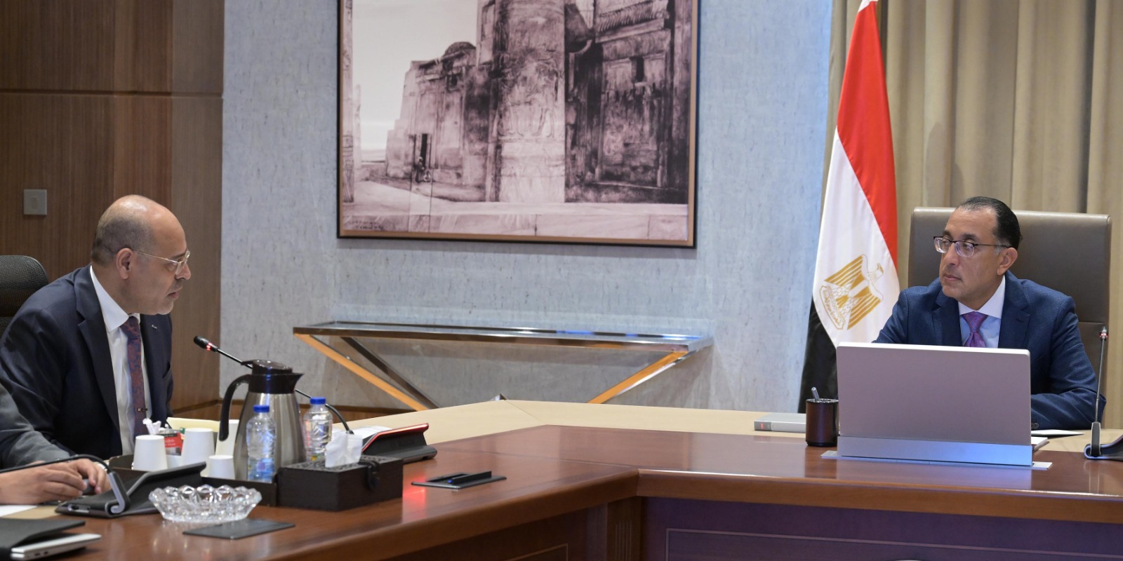 التقى الدكتور مصطفى مدبولي، رئيس مجلس الوزراء، اليوم، محمد جبران، وزير العمل، لاستعراض جهود الوزارة في عدد من ملفات العمل.