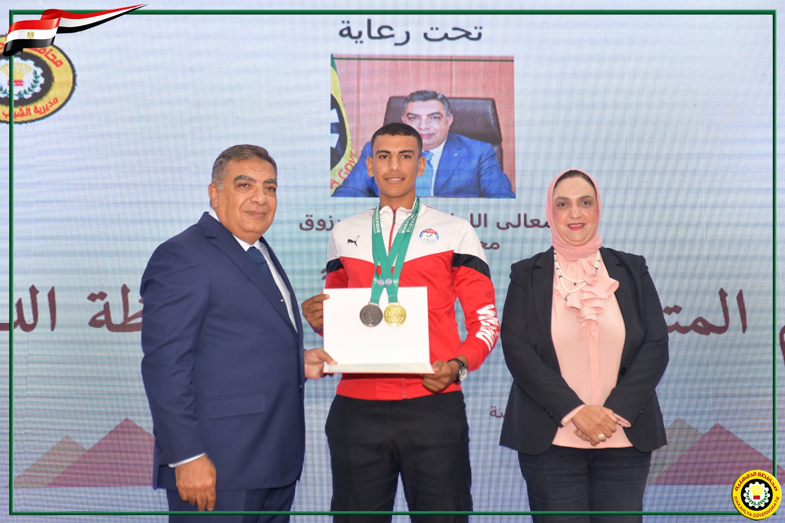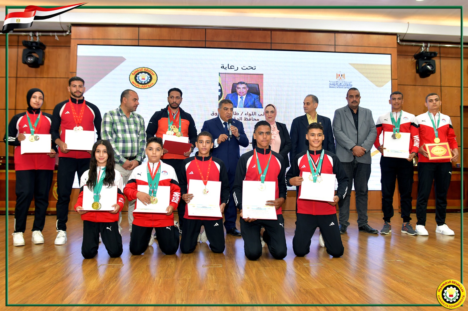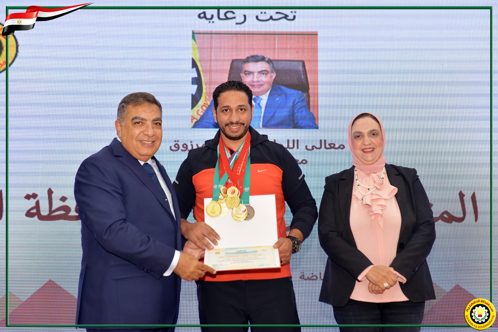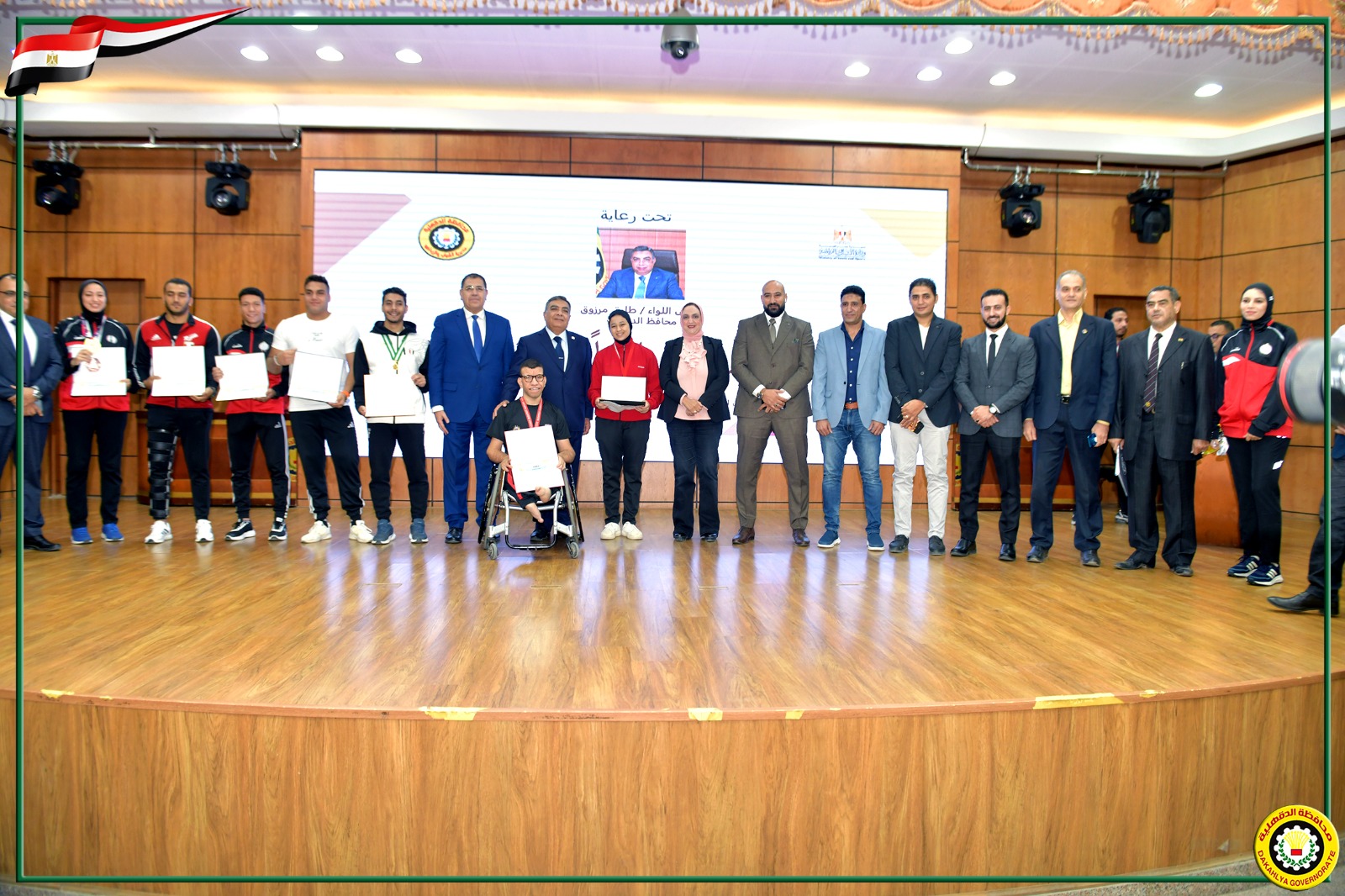 وقال إن المحافظة تشرفت بما حققه هؤلاء الأبطال من بطولات محلية وإقليمية ودولية، ومن تكريمات فهم يستحقون ذلك لرفعهم راية مصر عالية خفاقة في سماء الرياضة الدولية والعالمية.