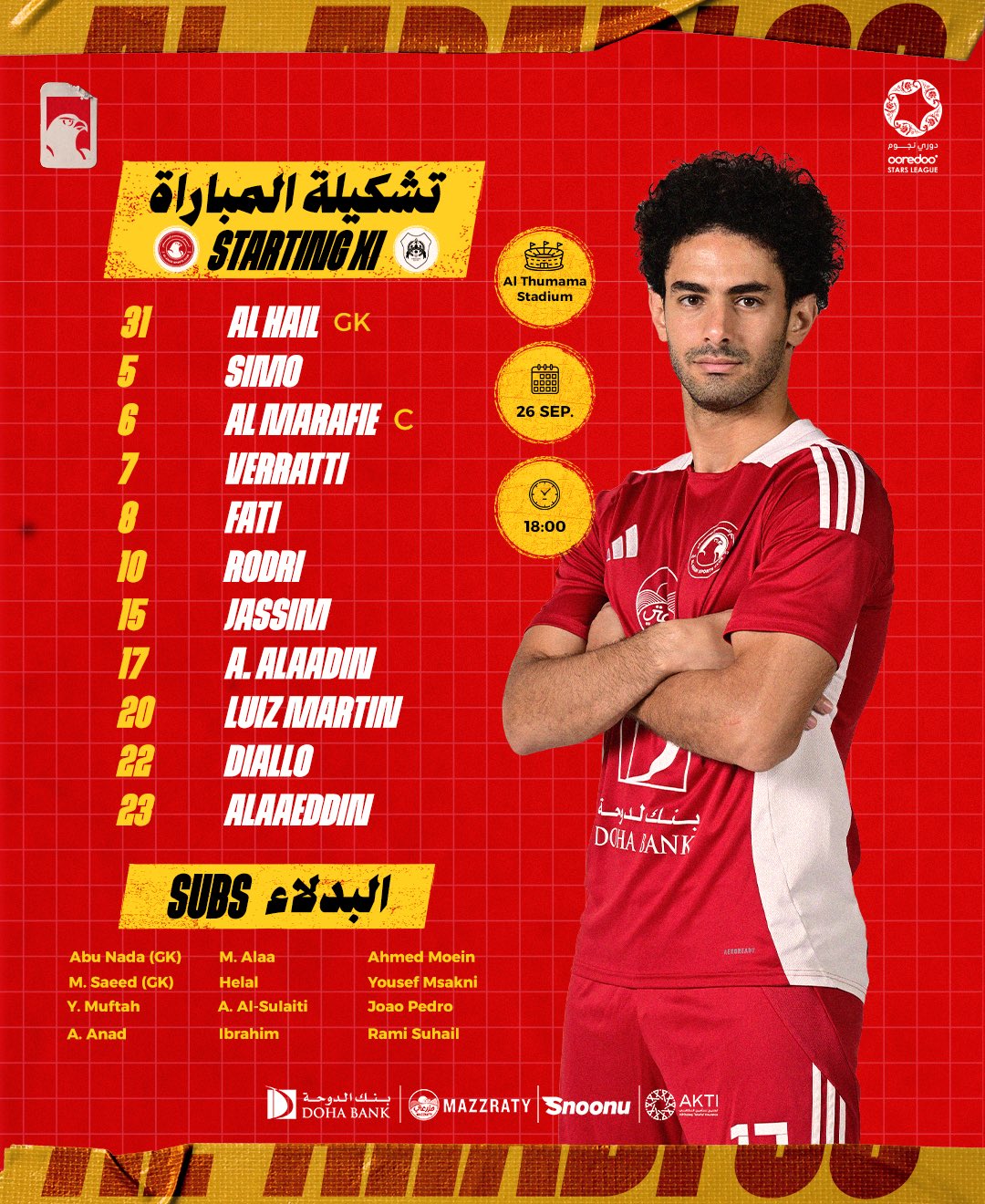 يلتقي فريق الريان بقيادة نجمه الدولي المصري محمود حسن تريزيجيه أمام مضيفه فريق العربي، ضمن منافسات الجولة السادسة من الدوري القطري الممتاز، مساء اليوم الخميس، على استاد حمد الكبير (استاد الثُمامة).
